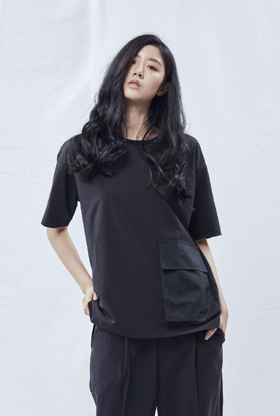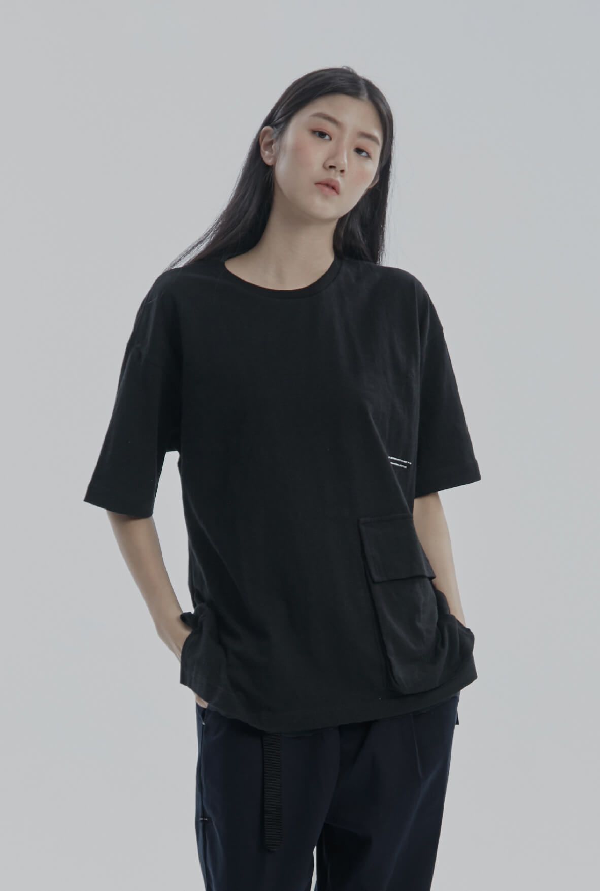 DYCTEAM - 寬鬆落肩單側貼袋TEE (BK)