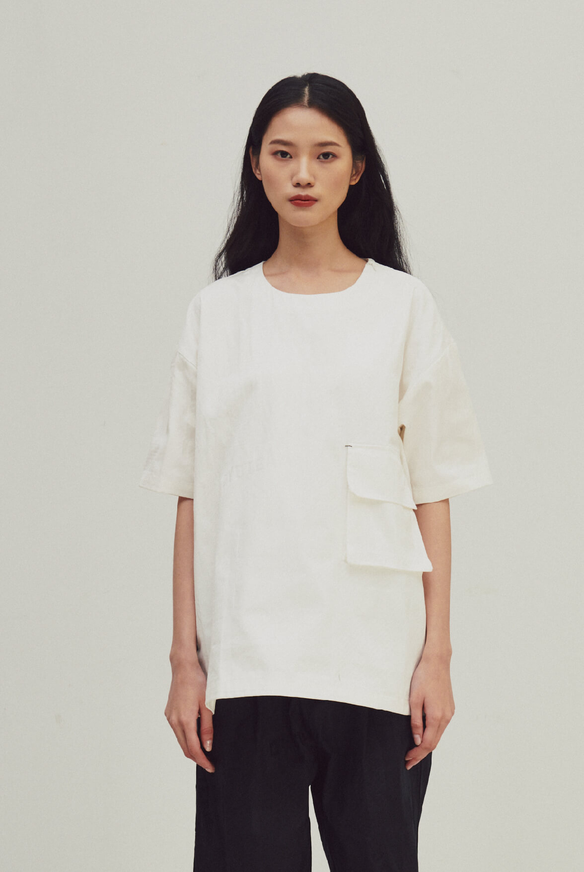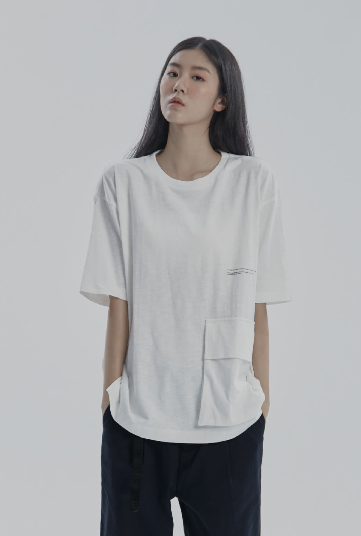 DYCTEAM - 寬鬆落肩單側貼袋TEE (WH)