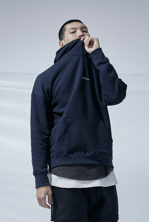 CLASSIC - 立體刻度LOGO落肩連帽TEE (dark blue)