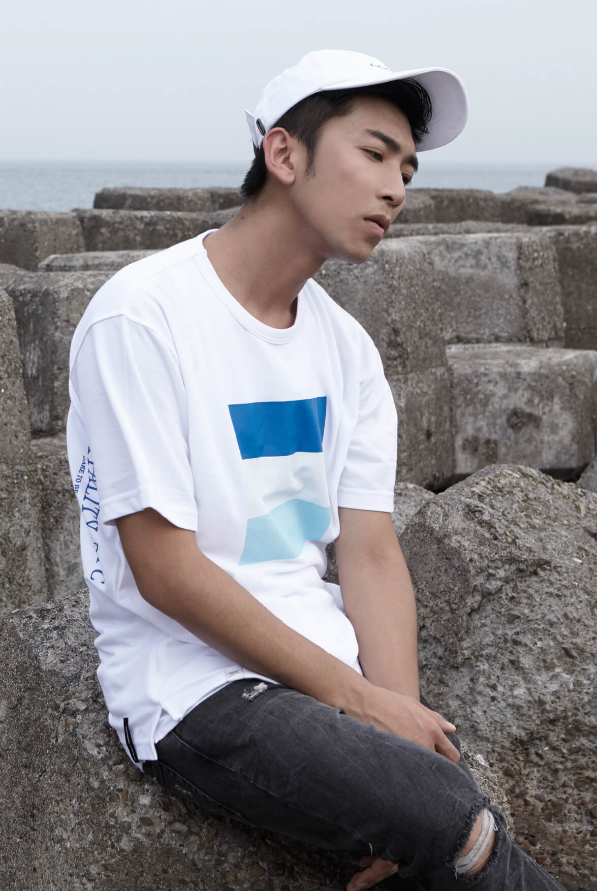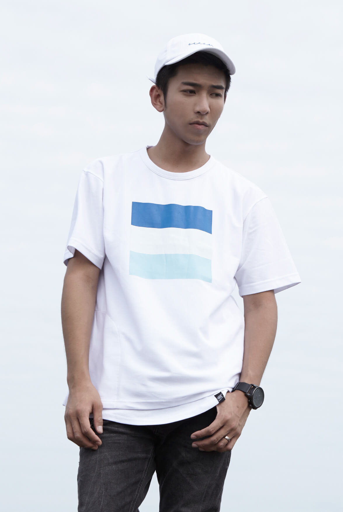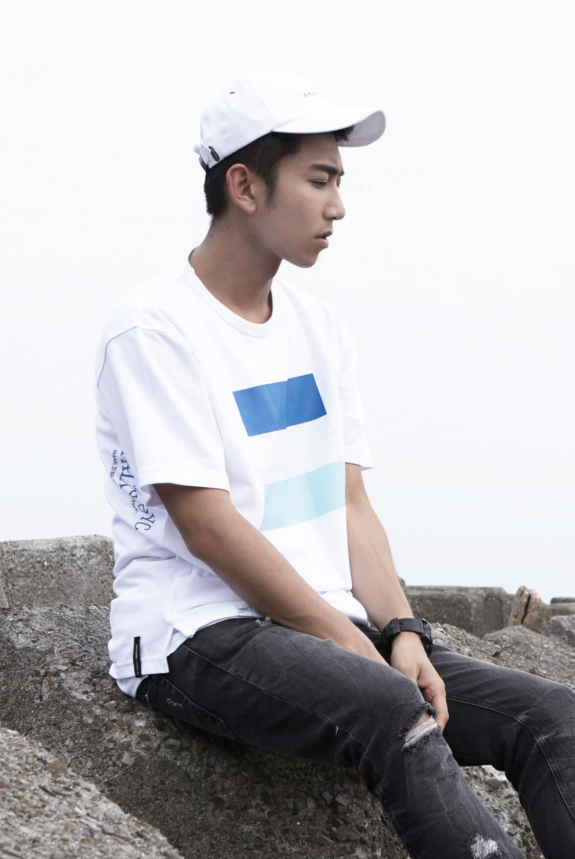 2. 正面胸口色塊印花設計。