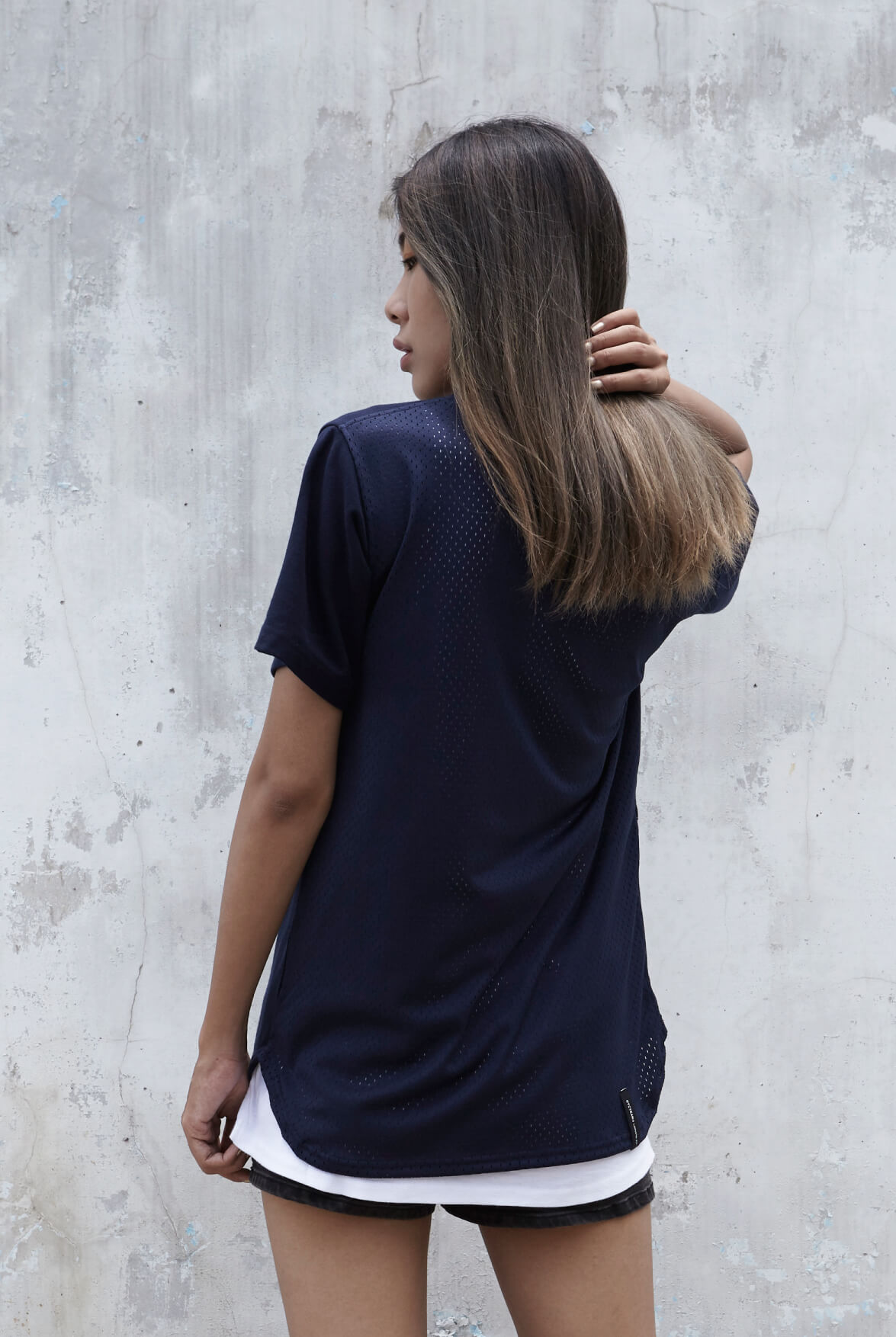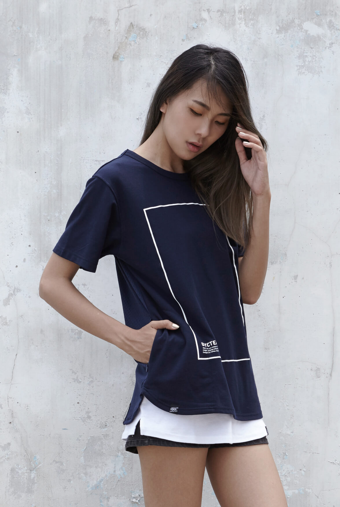2. 正面精緻印花,背後拼接機能網洞布料。