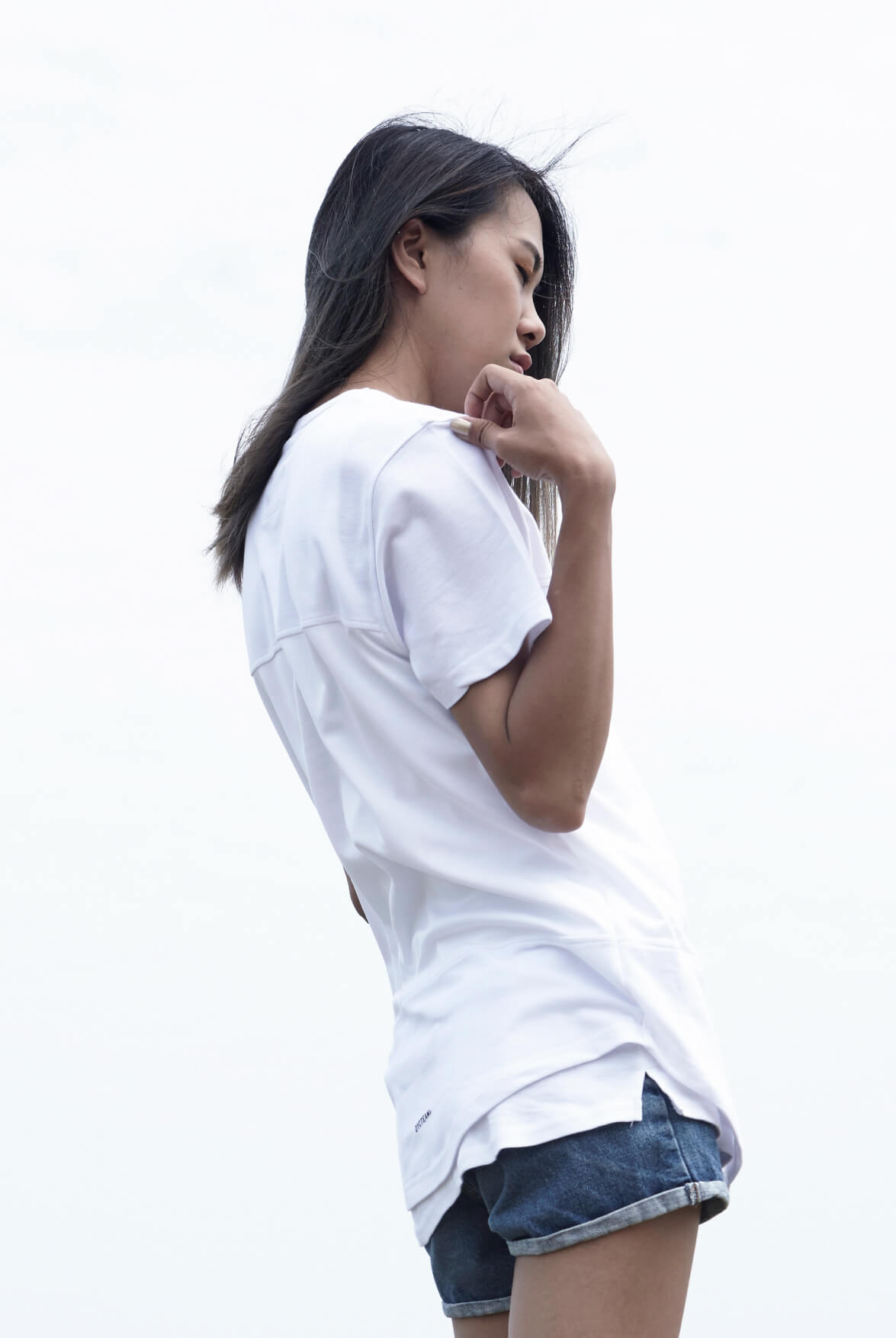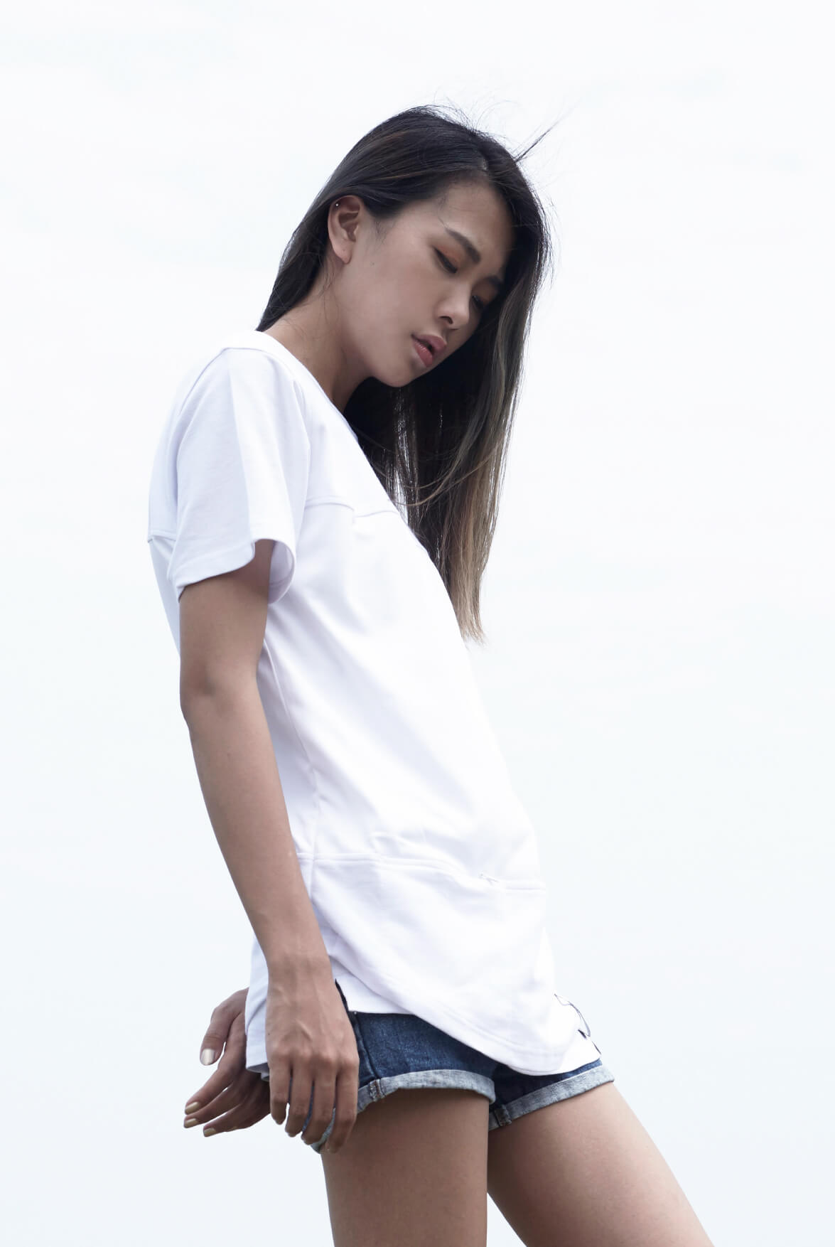 1. 正面拼接 添加玉石粉機能涼感面料。
