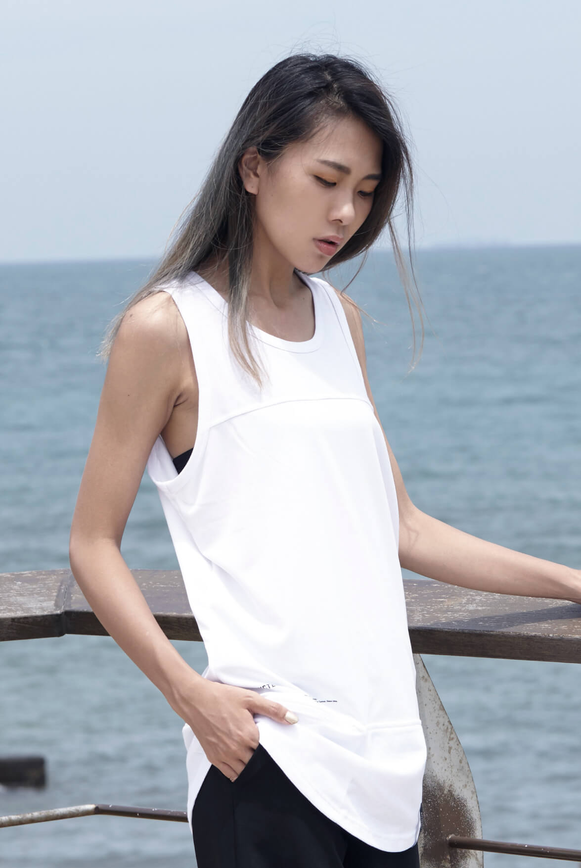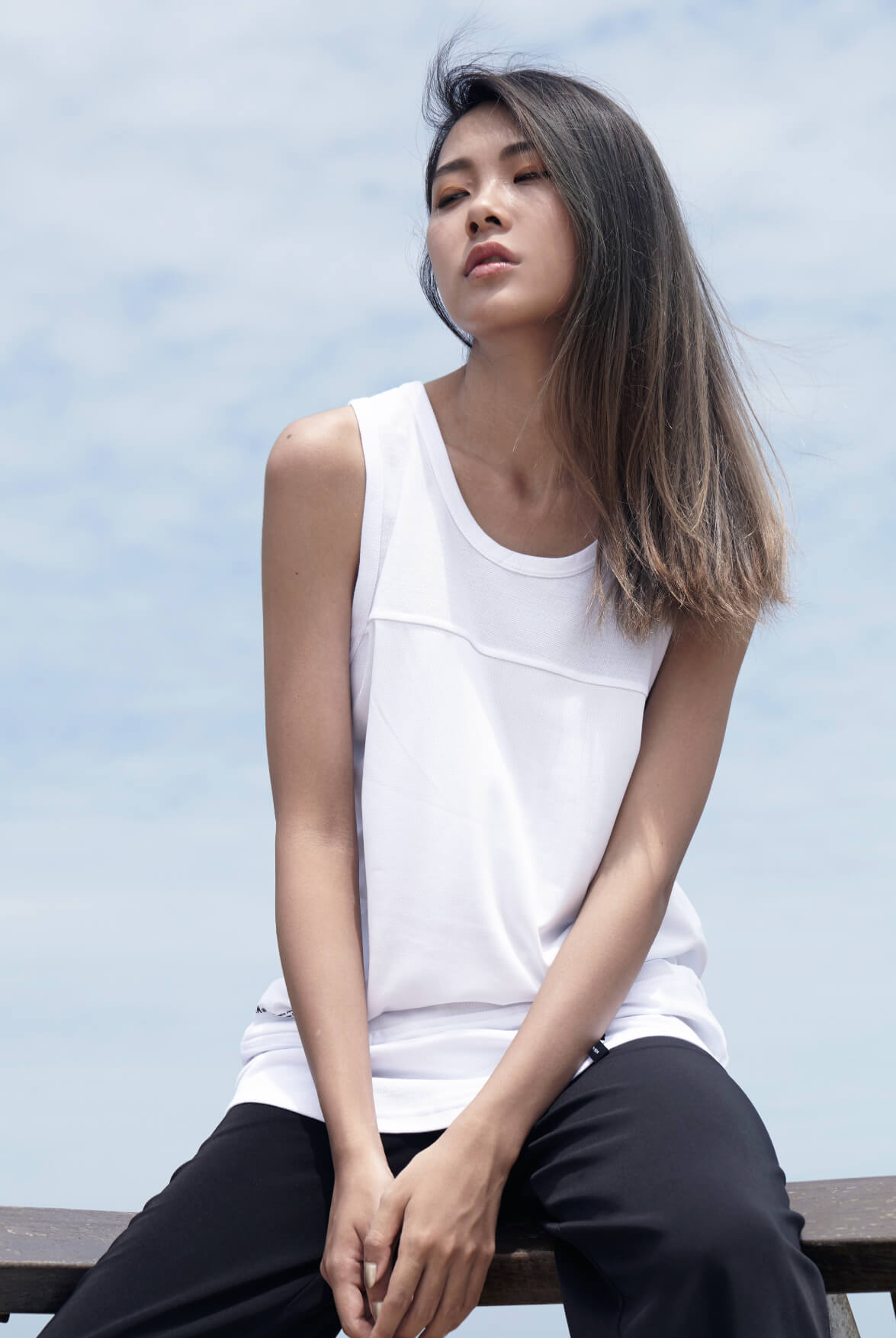 1. 正面拼接 添加玉石粉機能涼感面料。