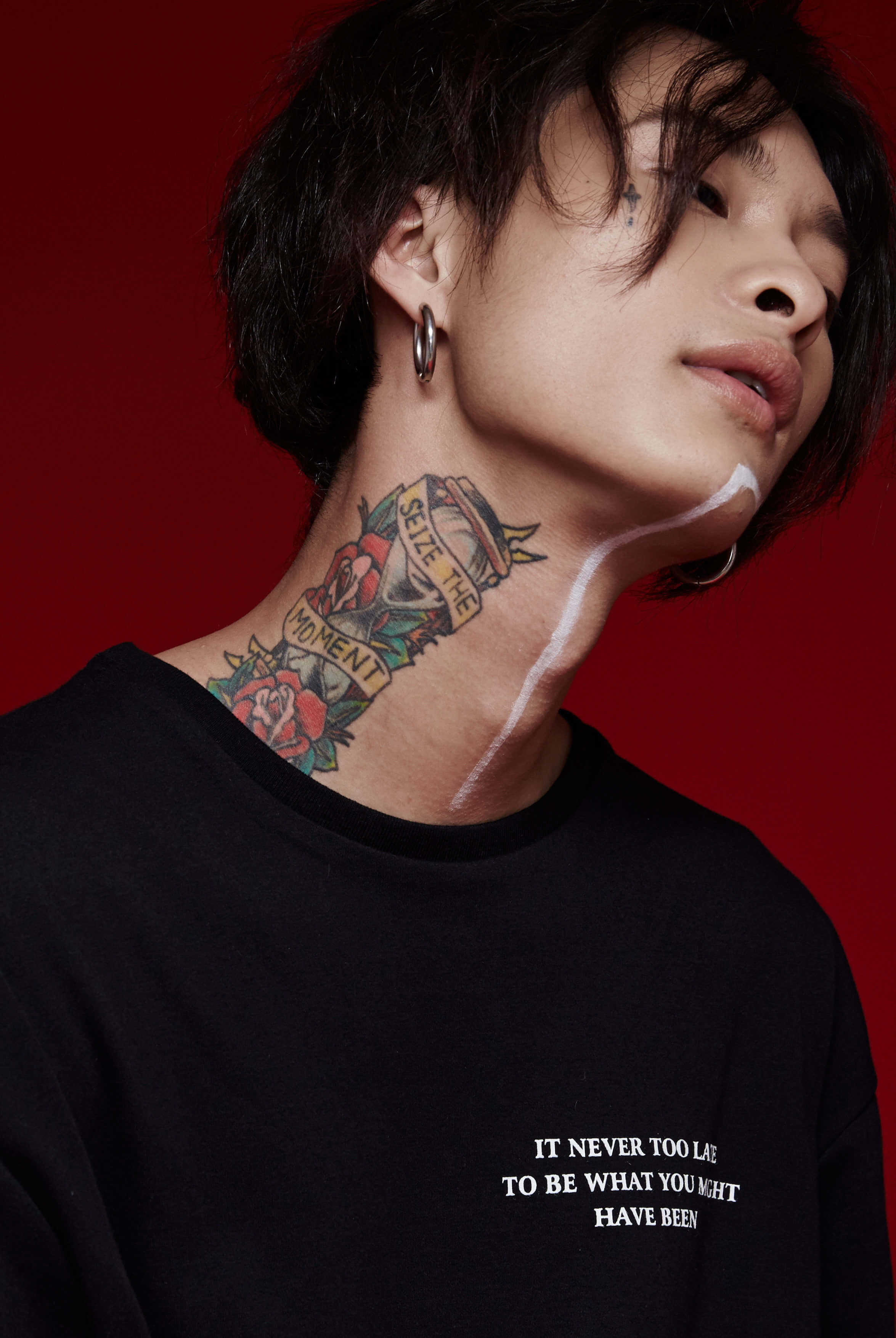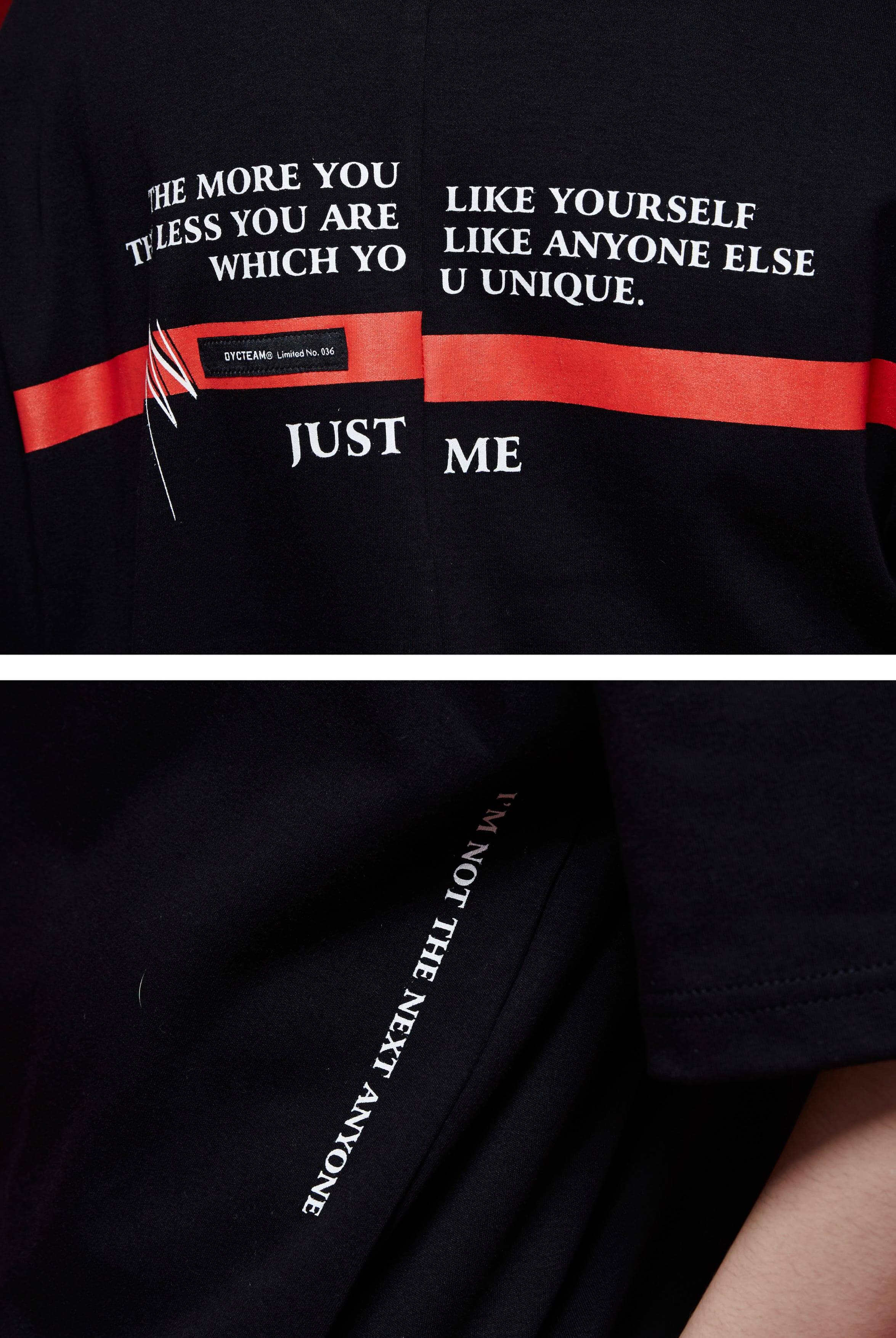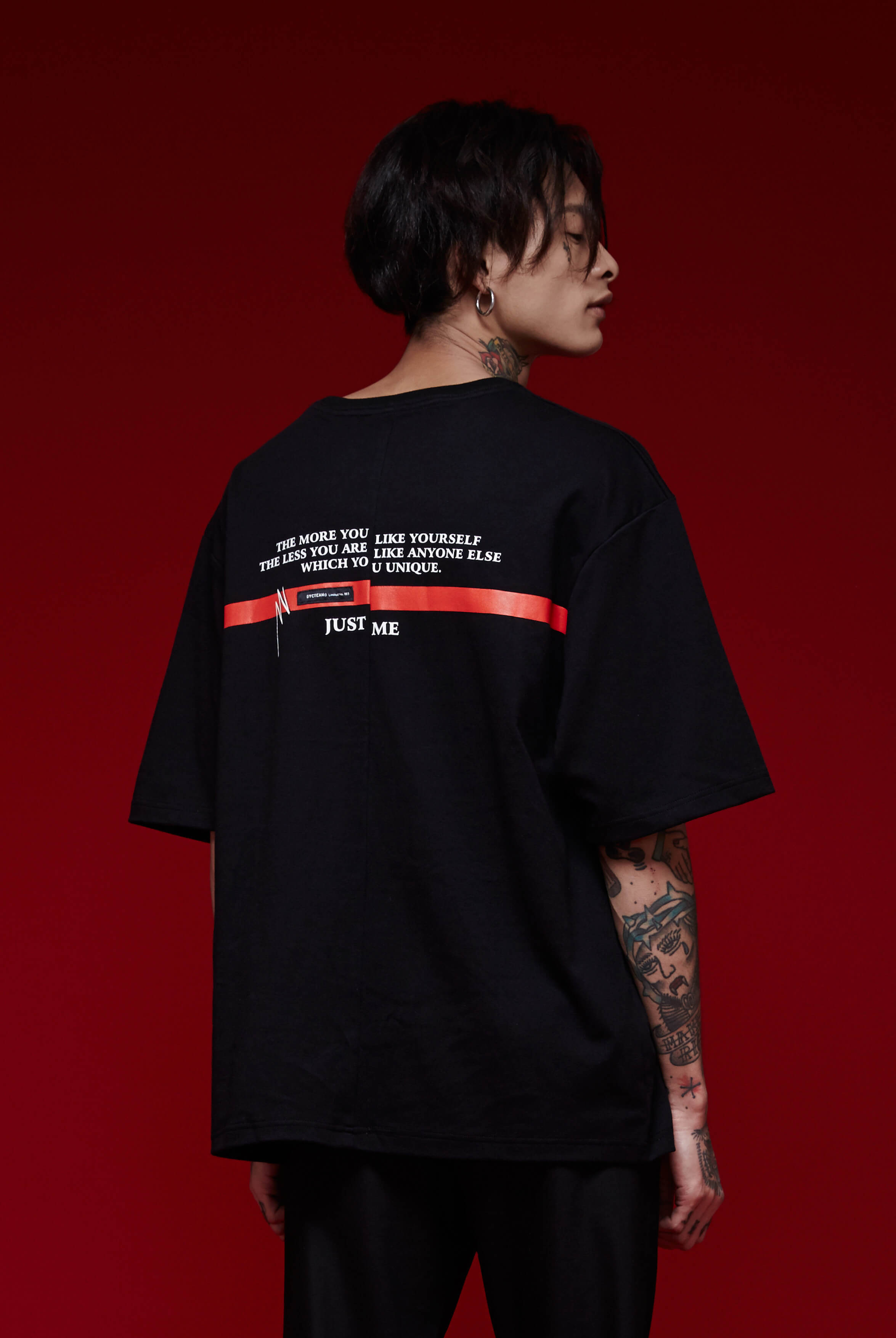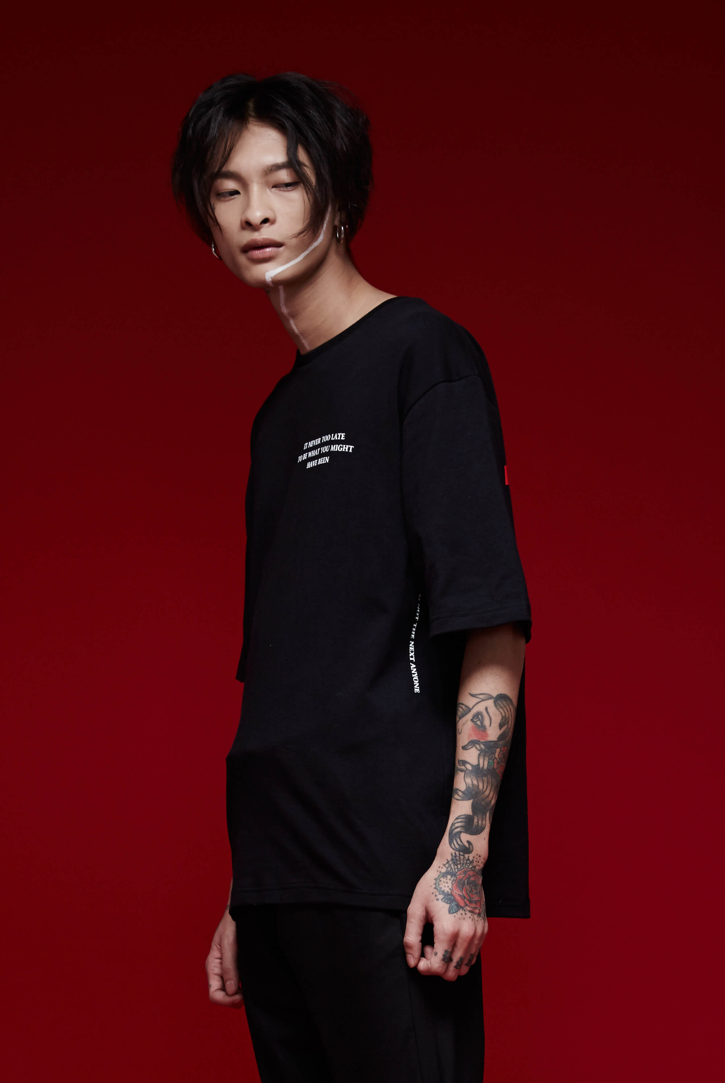 在這次的商品規劃上,結合了時下流行元素的過長袖,不收邊車縫、細緻的刷破處理,並大量運用「 I am not the next anyone.」、「You are looking fly today.」 等標語,同時結合鮮明紅色點綴細節,突顯此系列衷於自我的強烈性格展現。