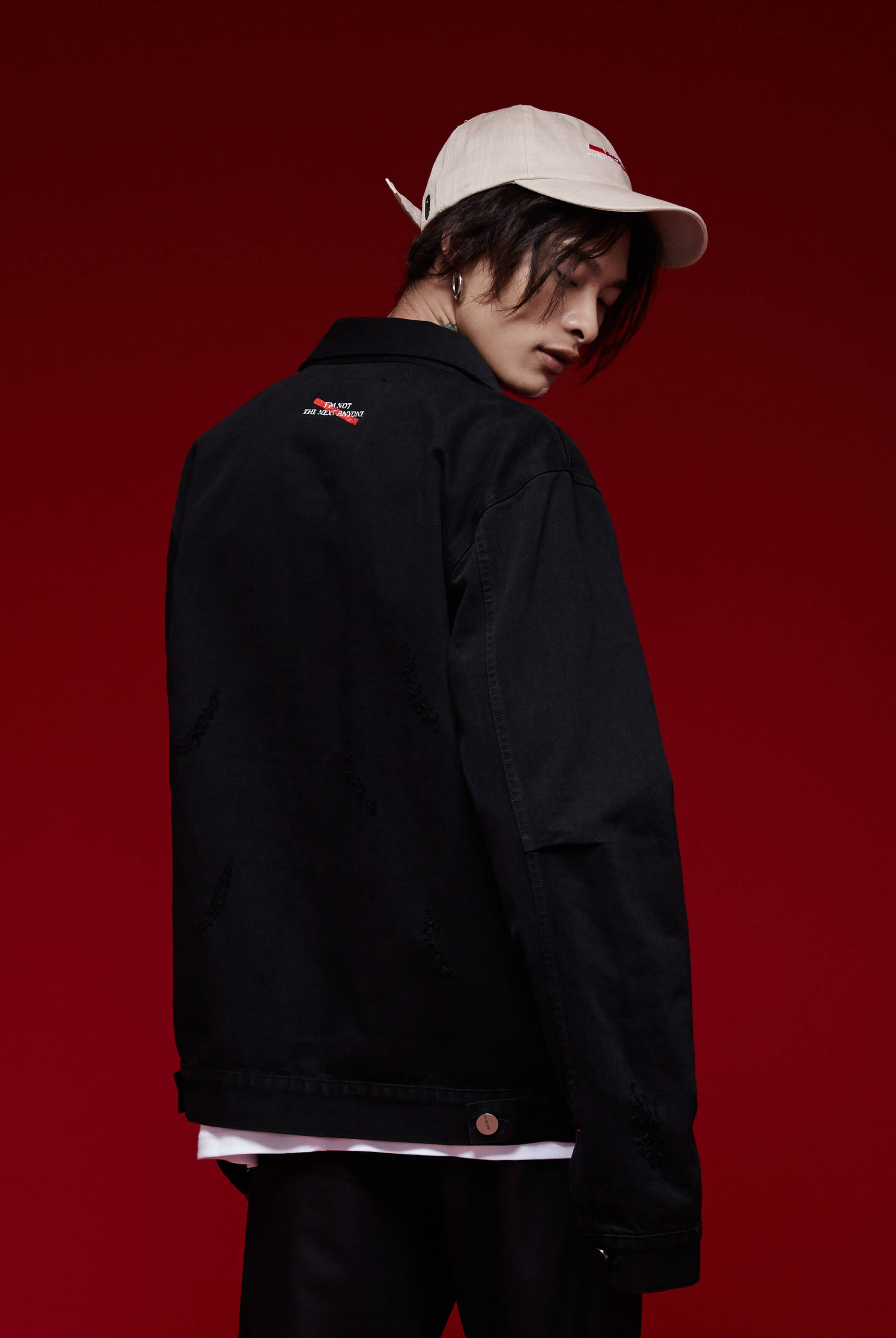 在這次的商品規劃上,結合了時下流行元素的過長袖,不收邊車縫、細緻的刷破處理,並大量運用「 I am not the next anyone.」、「You are looking fly today.」 等標語,同時結合鮮明紅色點綴細節,突顯此系列衷於自我的強烈性格展現。