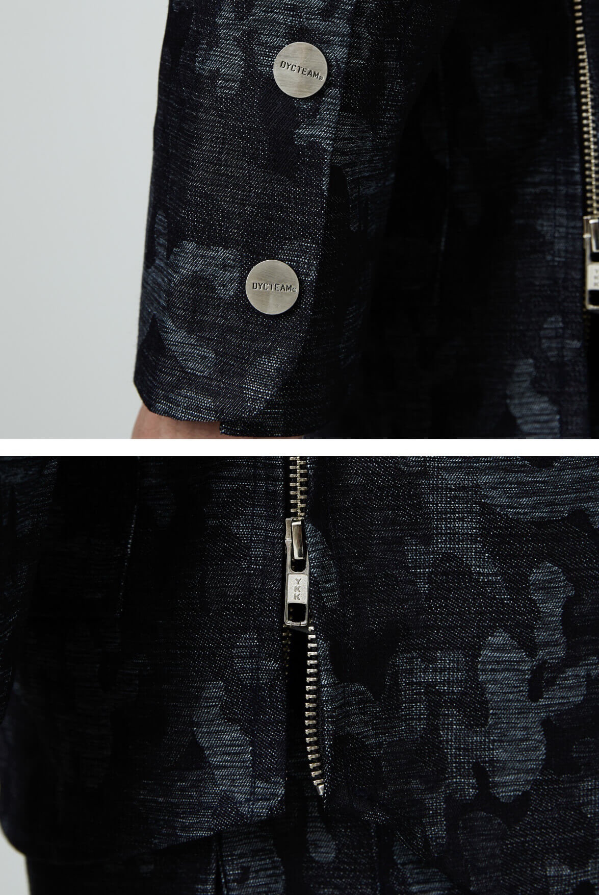 全新一季品牌專注挑選優質面料與版型剪裁設計,打造不過度追逐流行的服裝風格。Camouflage Pattern 整套選用緹花迷彩高端單寧面料,成品後透過輕水洗增加穿著上的舒適度及每件不同色澤獨特性。