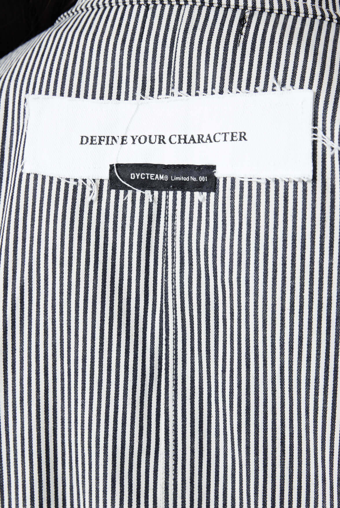 此系列以特別的貼布貫穿-將大衛‧ 鮑伊圖像先印製在異材質布片上,再以不收布邊車縫呈現自然的毛鬚感,呼應主角一生追求自我定義不受時代約束的開創性風格,也正是DYCTEAM品牌 Define Your Character 的核心精神。