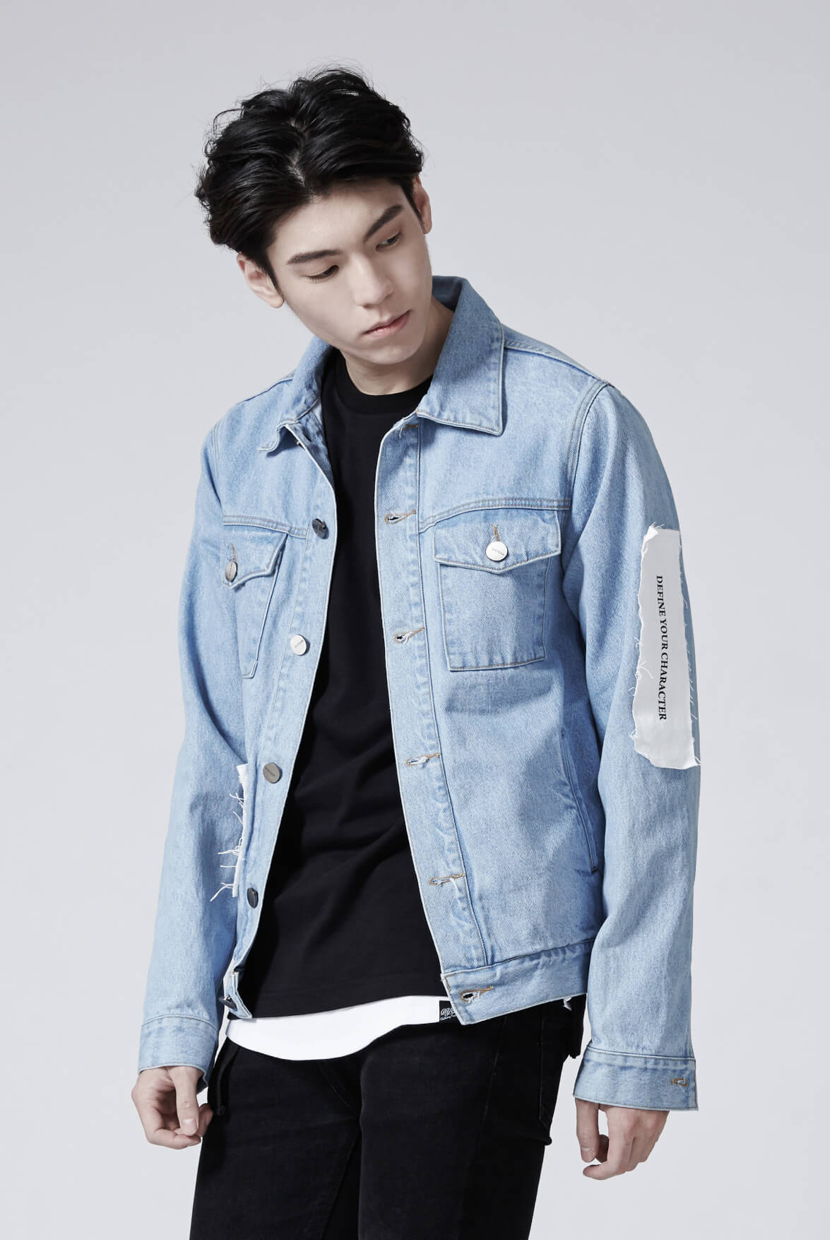 此系列以特別的貼布貫穿-將大衛‧ 鮑伊圖像先印製在異材質布片上,再以不收布邊車縫呈現自然的毛鬚感,呼應主角一生追求自我定義不受時代約束的開創性風格,也正是DYCTEAM品牌 Define Your Character 的核心精神。