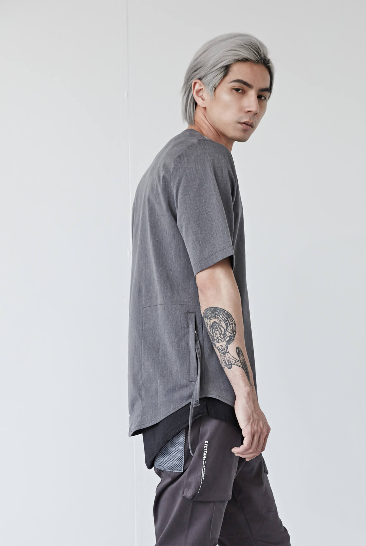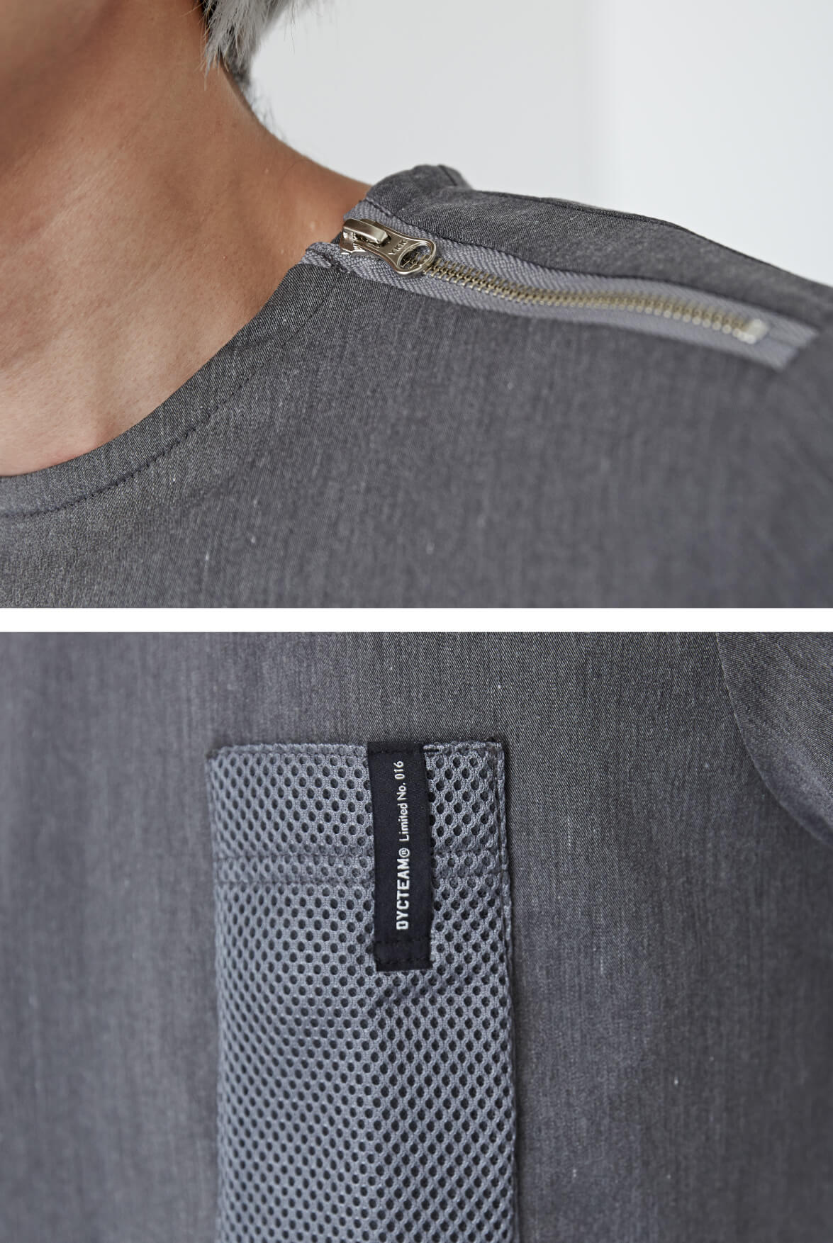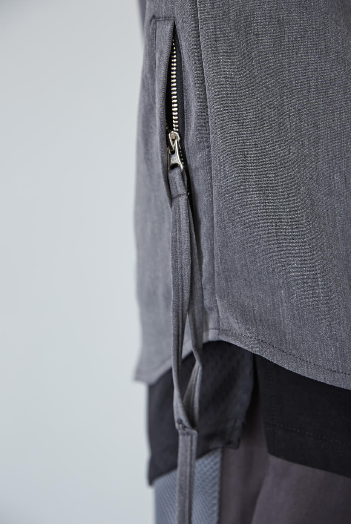- 前口袋網布異材質拼接、右後側隱藏式拉繩口袋。