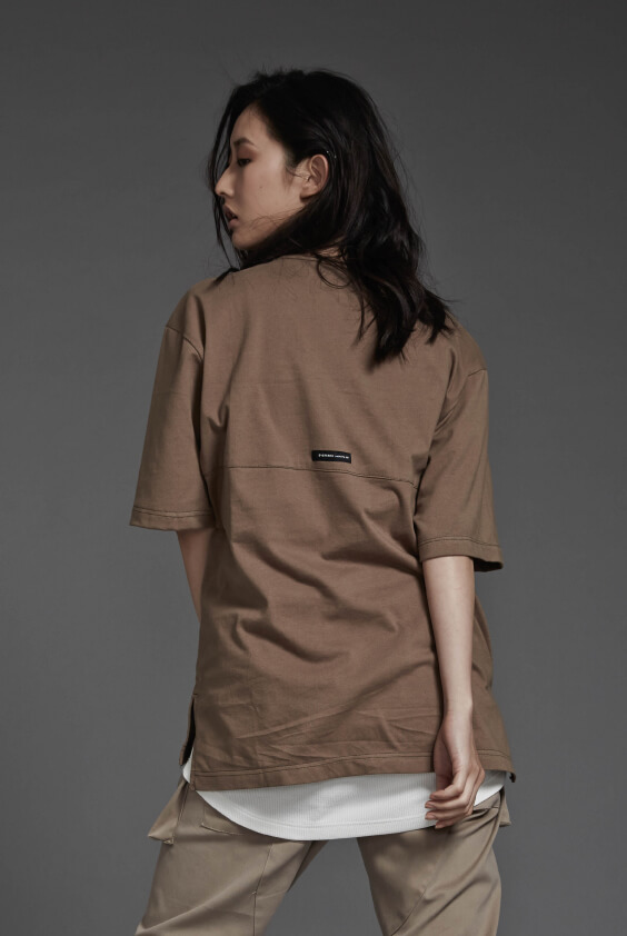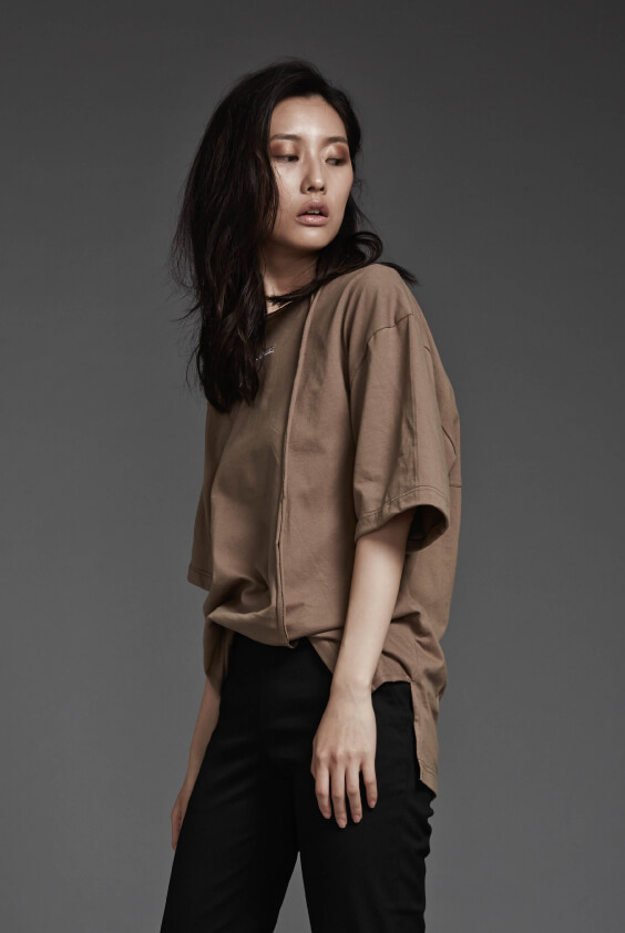 - 商品不收邊設計、左右不對稱剪裁、寬鬆落肩版型。