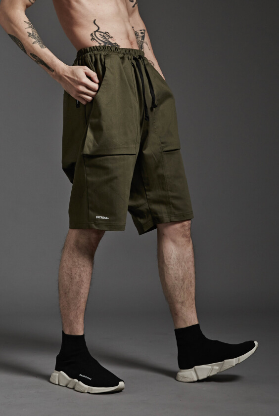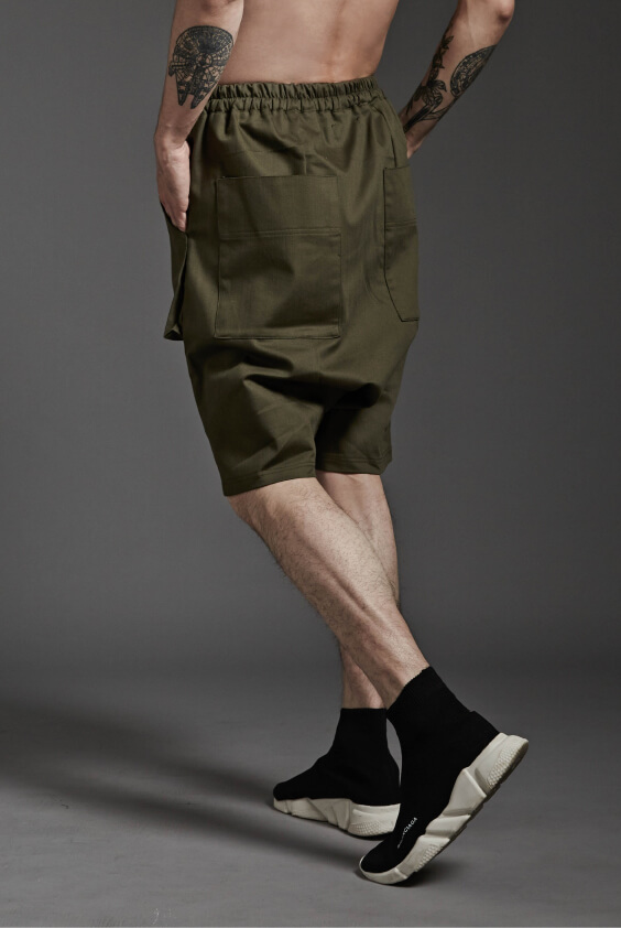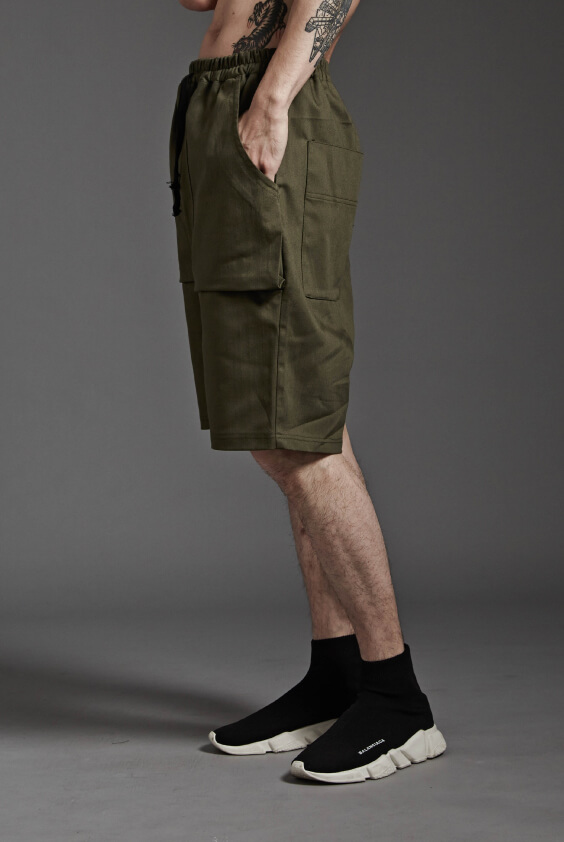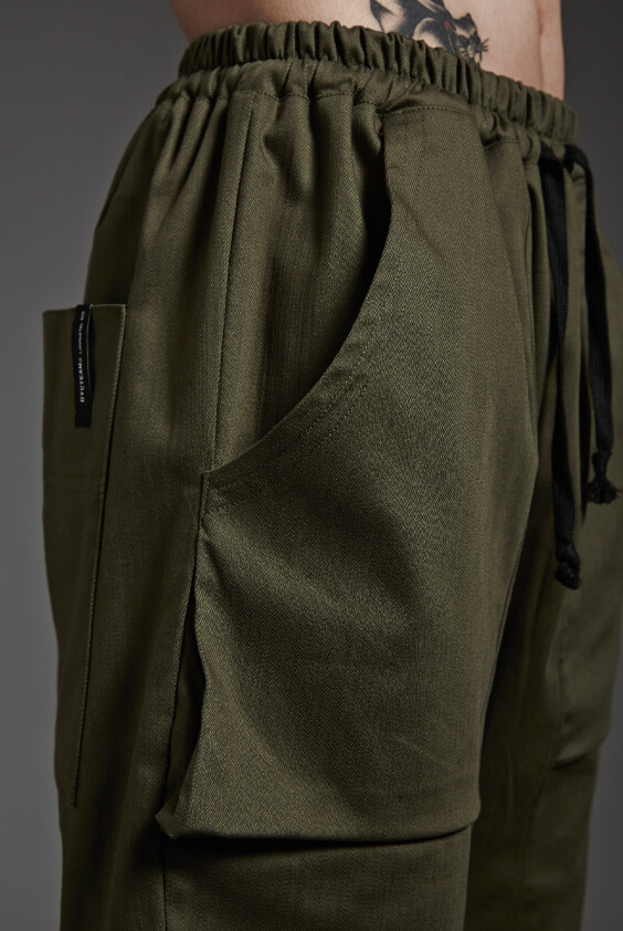 - 鬆緊褲頭、兩側大口袋剪裁。
