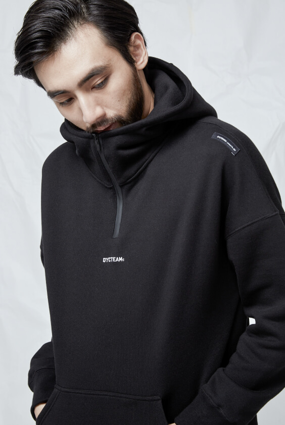 - 落肩寬鬆版型、立領貼合拉鍊。
