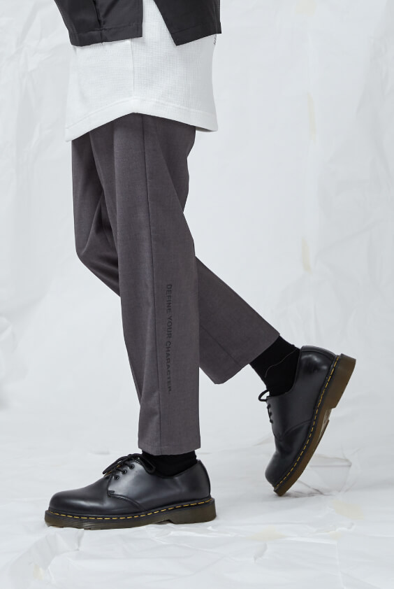 - 合身九分褲、腰際打摺設計。