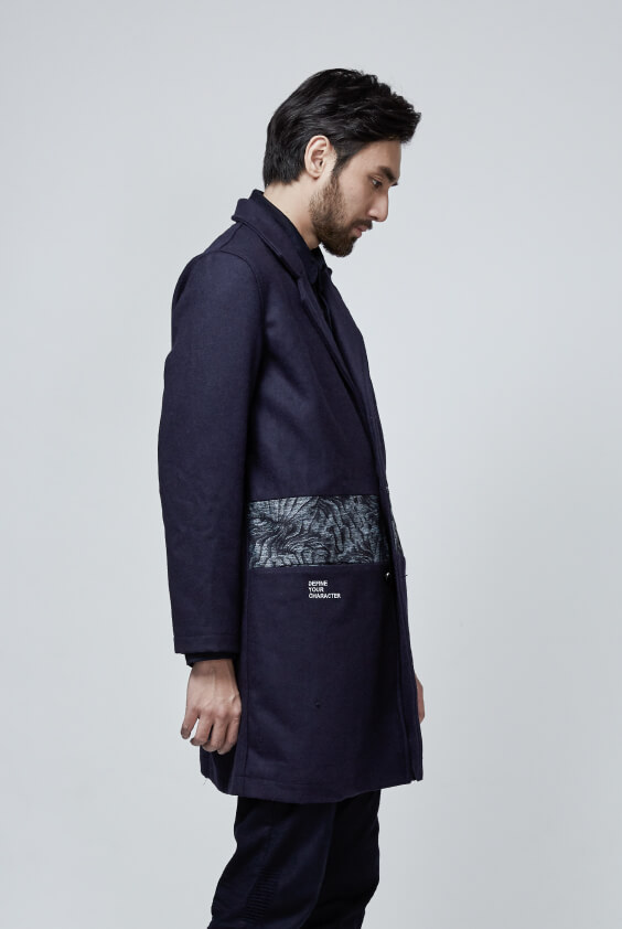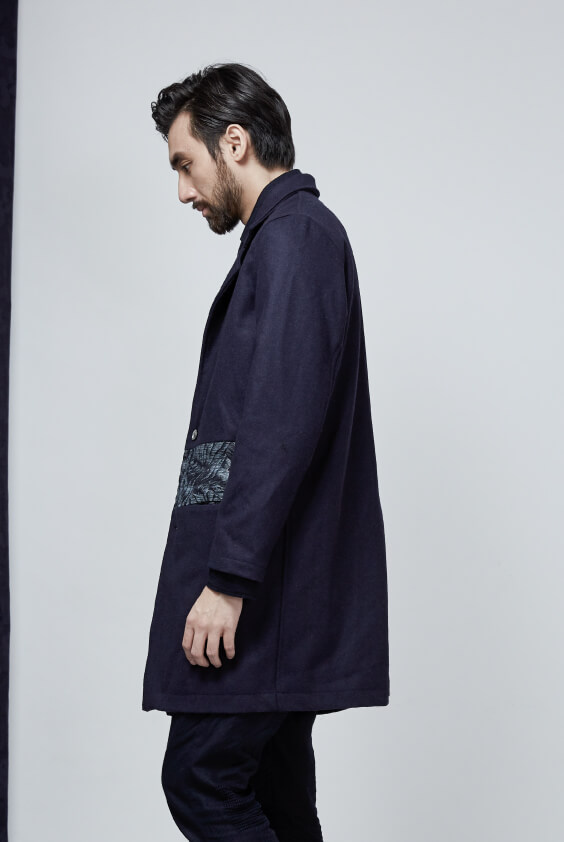WEAR IN BLUE - Wool Stitching Jacquard Denim Coat