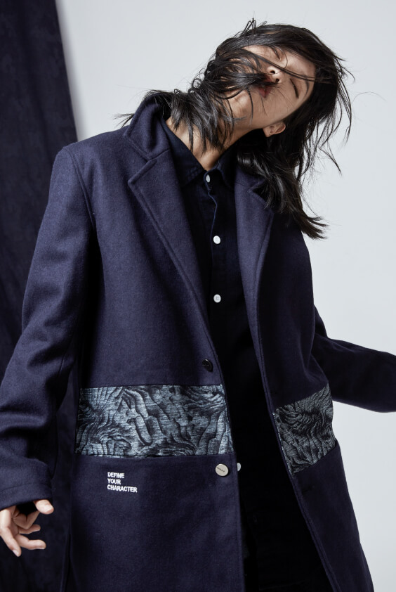 WEAR IN BLUE - Wool Stitching Jacquard Denim Coat