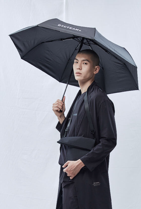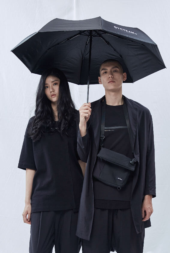 配件上針對夏季炎熱陽光開發的自動收合傘,在傘布內層多加上ㄧ層抗UV 50+的阻擋膜,以及抗強風的八傘骨架,全黑色調的設計,隨身攜帶適合台灣多變的氣候。