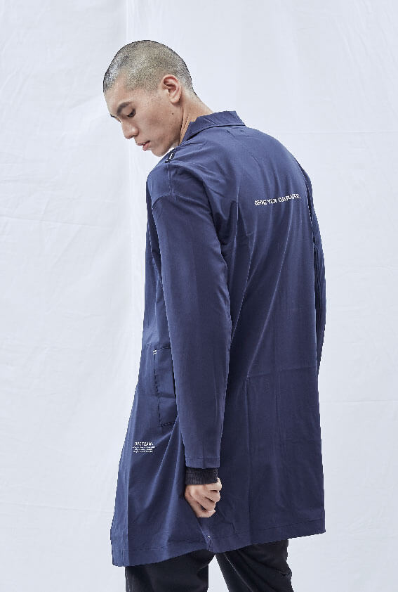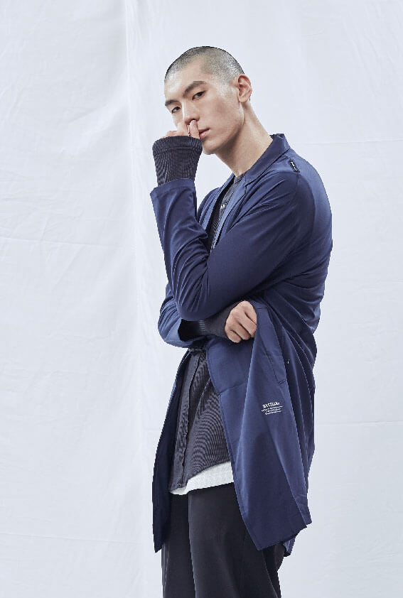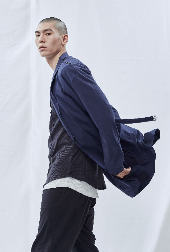 本季BLUE collection除了在版型上的調整以外,也獨家開發機能面料,綜合防潑水、涼感透氣機能,揮別於過往的厚重感,觸感上也更加輕薄,在炎熱的夏季中也更能輕鬆做出簡單的穿搭層次。
