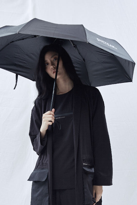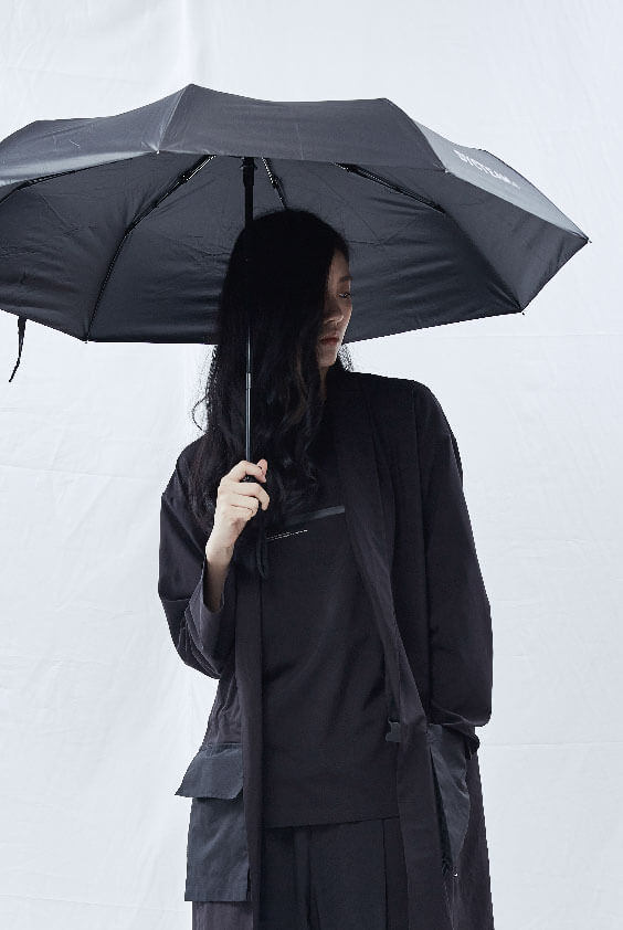 配件上針對夏季炎熱陽光開發的自動收合傘,在傘布內層多加上ㄧ層抗UV 50+的阻擋膜,以及抗強風的八傘骨架,全黑色調的設計,隨身攜帶適合台灣多變的氣候。