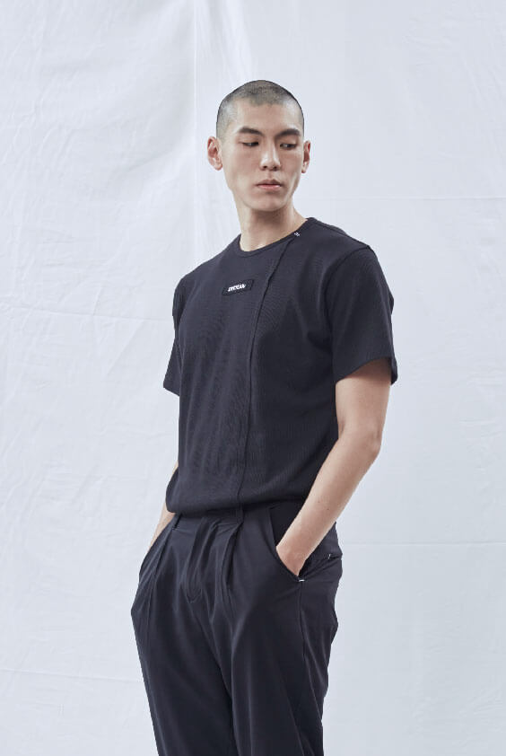 本季BLUE collection除了在版型上的調整以外,也獨家開發了美國杜邦機能面料,綜合防潑水、涼感透氣機能,揮別於過往的厚重感,觸感上也更加輕薄,在炎熱的夏季中也更能輕鬆做出簡單的穿搭層次。
