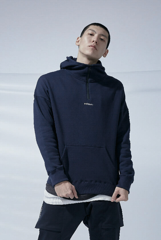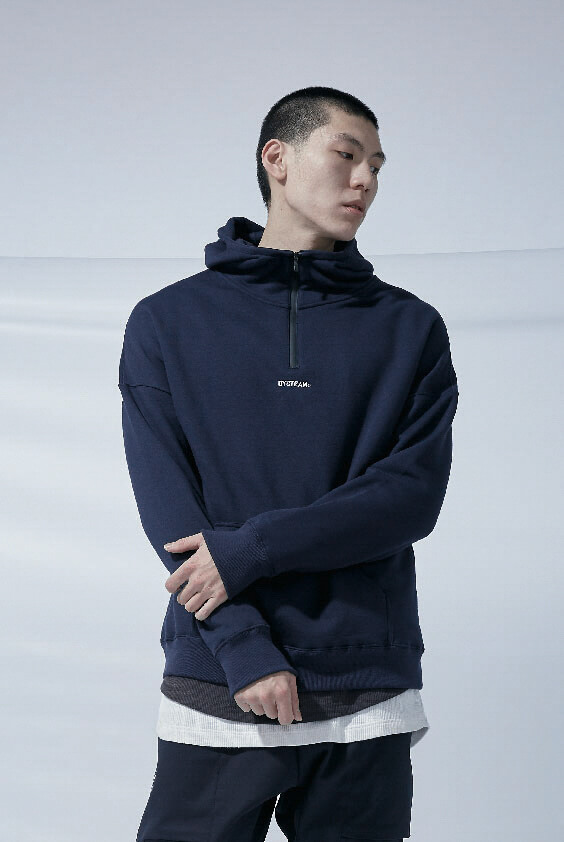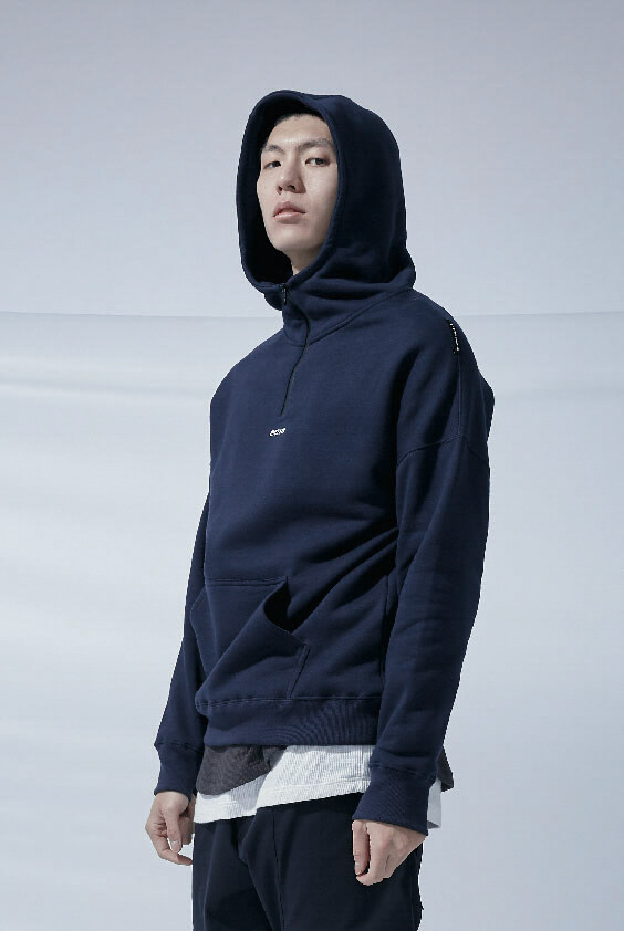 - 厚磅刷毛立體拉鍊連帽TEE。