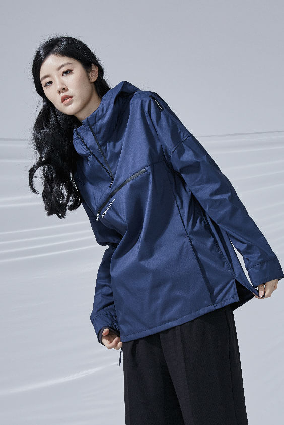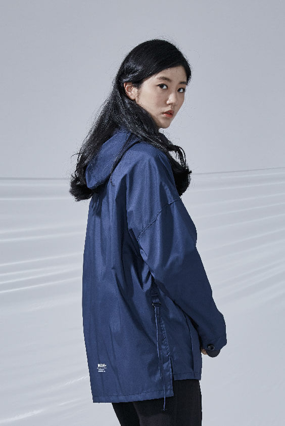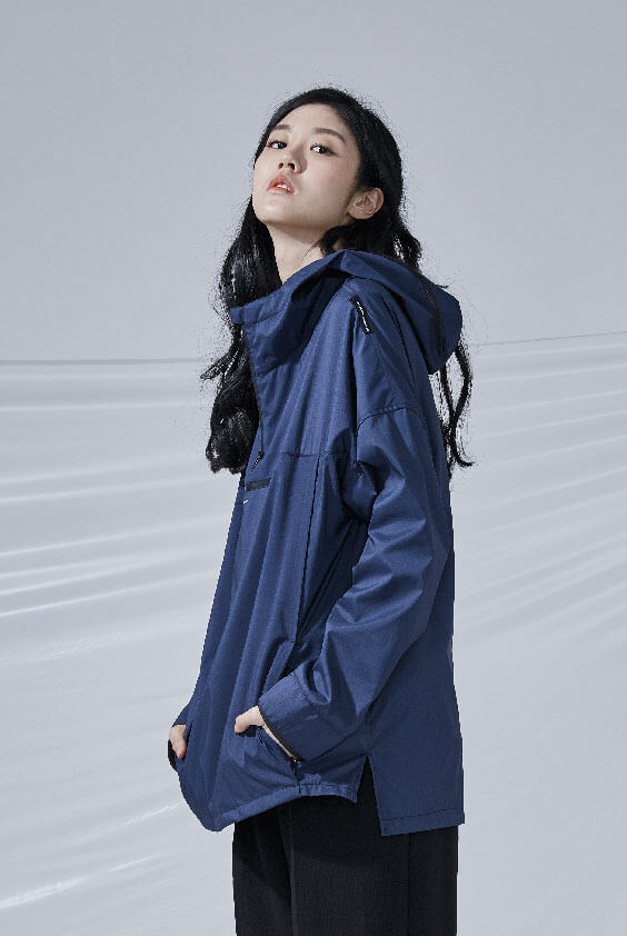 - 防水連帽衝鋒衣,材質為3M防水格紋布料。
