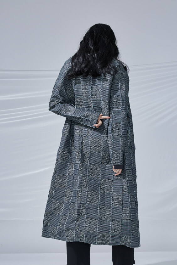 - 立體格紋超長版落肩西裝大衣。