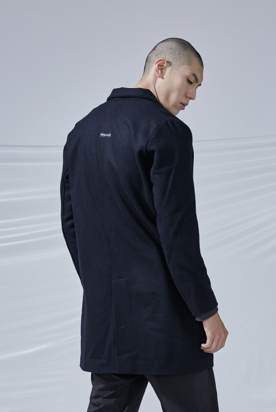 - 厚羊毛長版大衣。