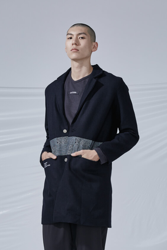 - 兩側插袋、後片開岔設計。