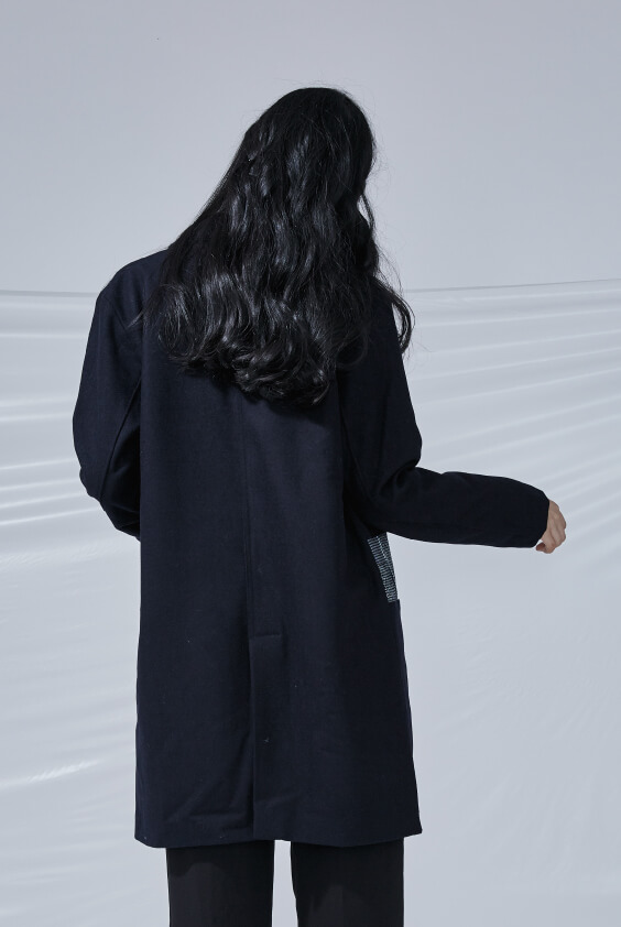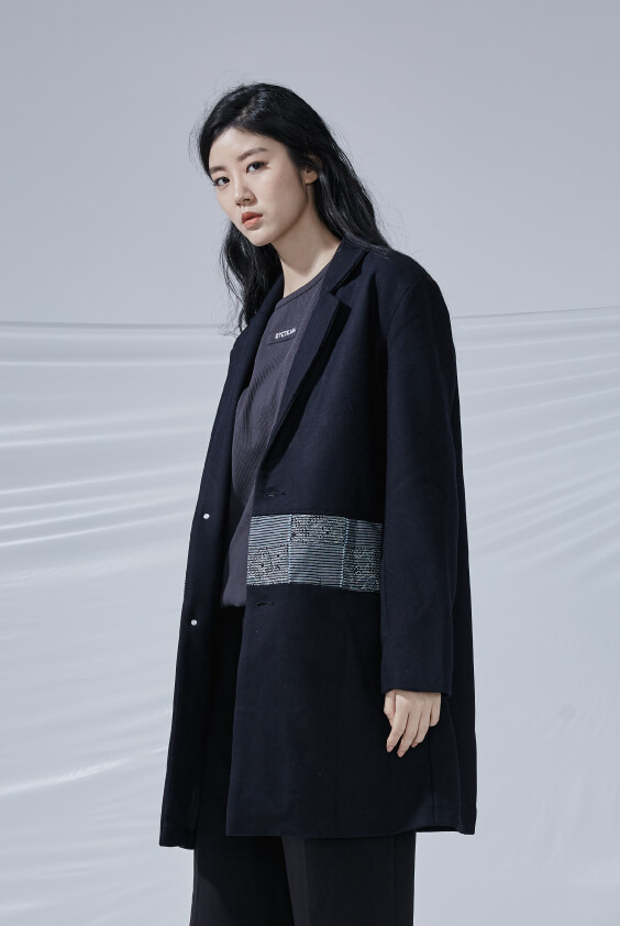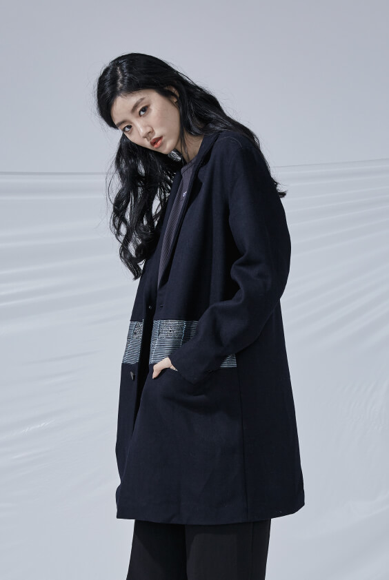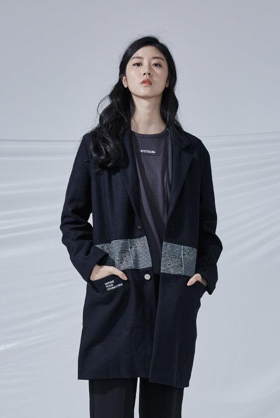 - 兩側插袋、後片開岔設計。