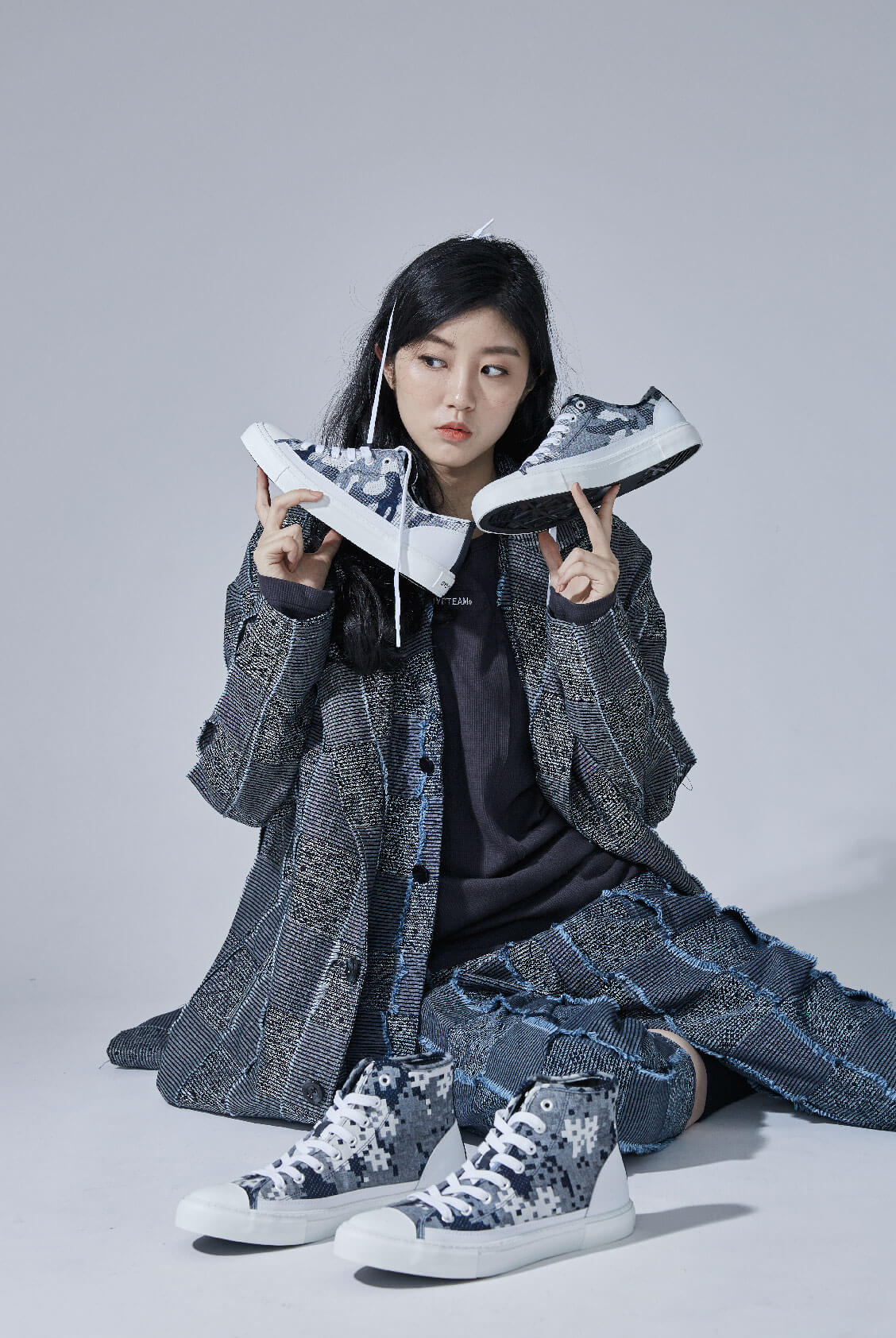 - 選用高品質丹寧緹花迷彩紋布料製作。
