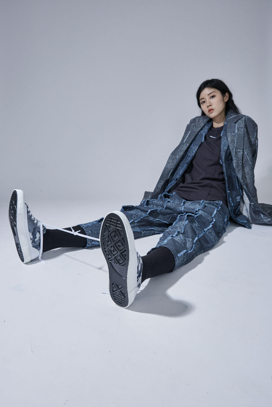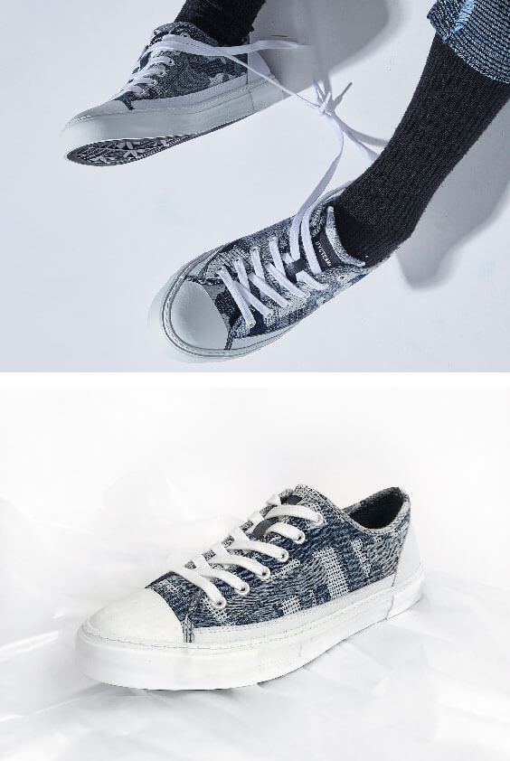 - 丹寧緹花帆布鞋。