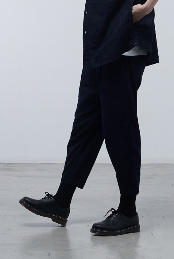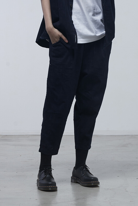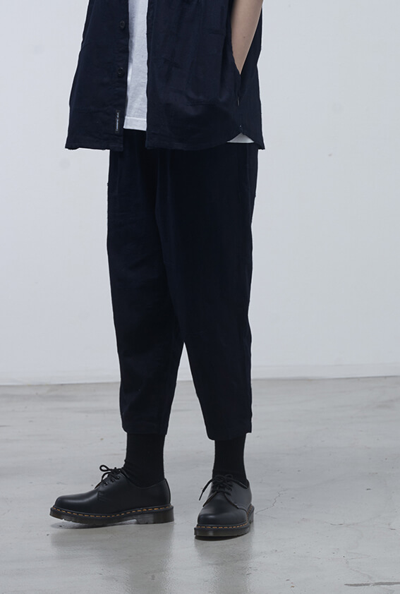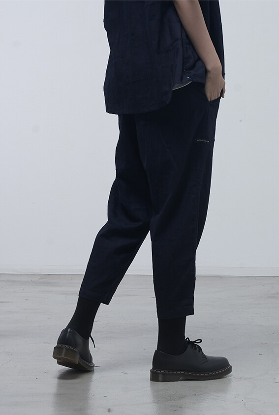 - 褲口打褶設計、修身八分褲型。