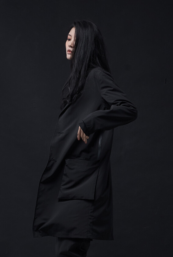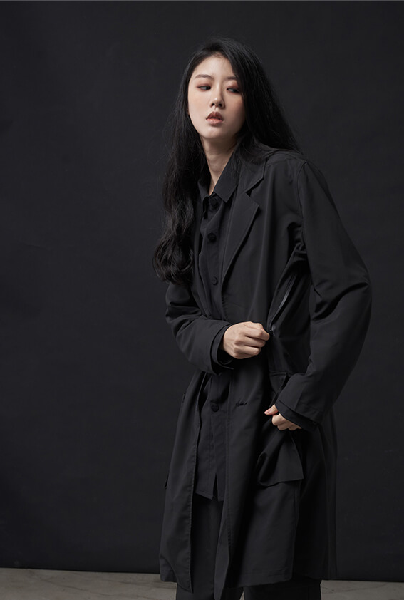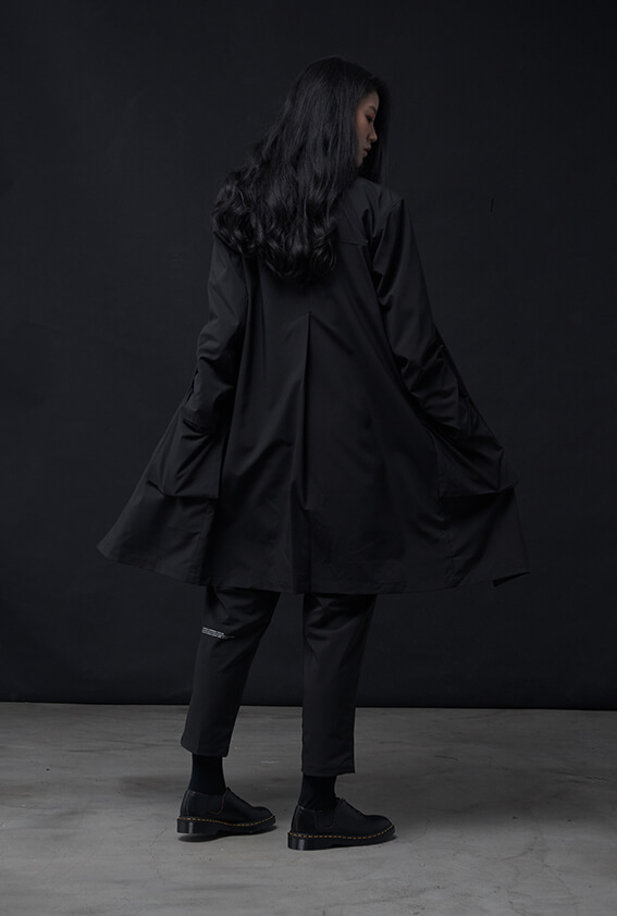 - 門襟專屬DYCTEAM鈕扣、背面打褶層次增加垂墜。