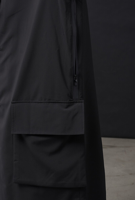 - 下擺雙口袋、兩側防水拉鍊透氣口。