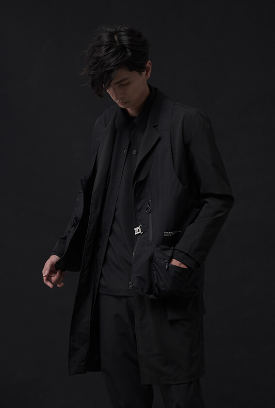 - 門襟專屬DYCTEAM鈕扣、背面打褶層次增加垂墜。