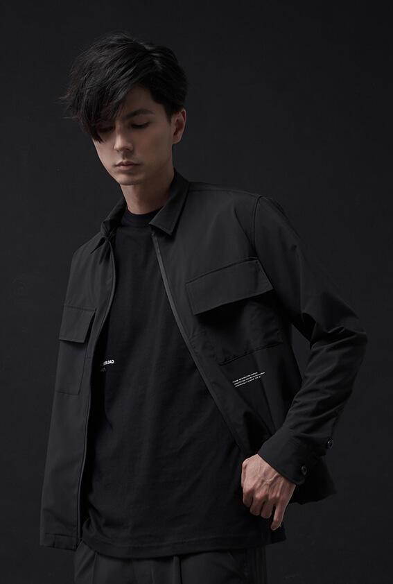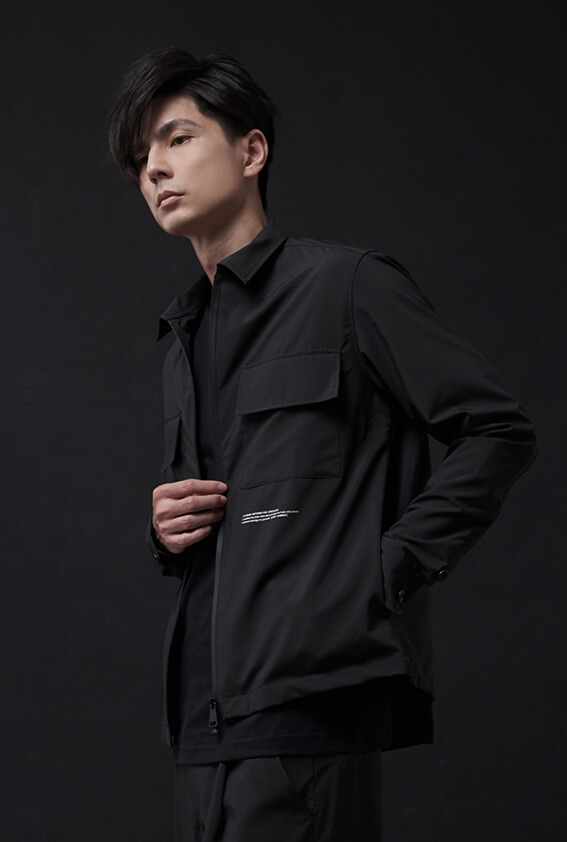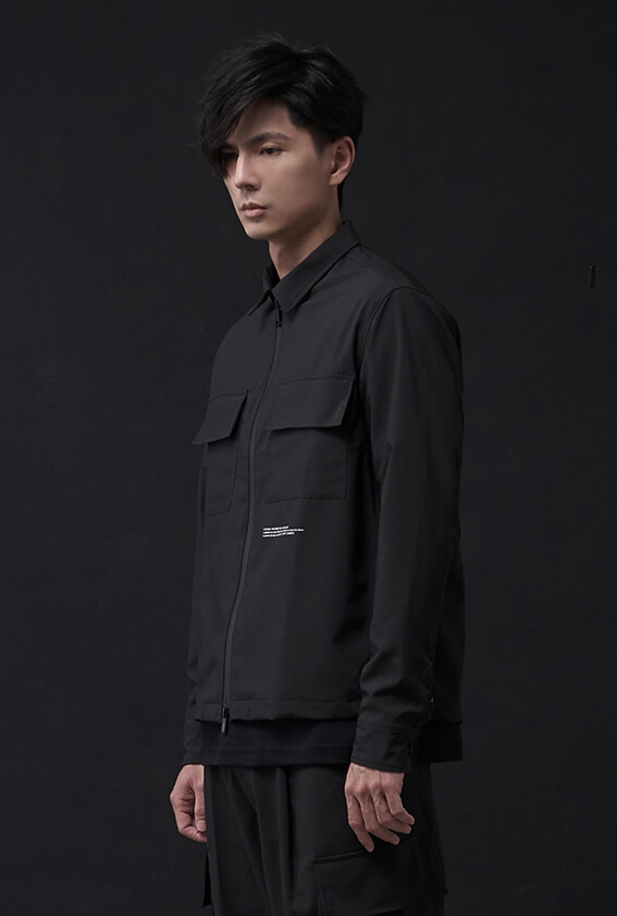 - 正面胸口兩側貼袋、兩側腰間插袋、門襟防水拉鍊設計。
