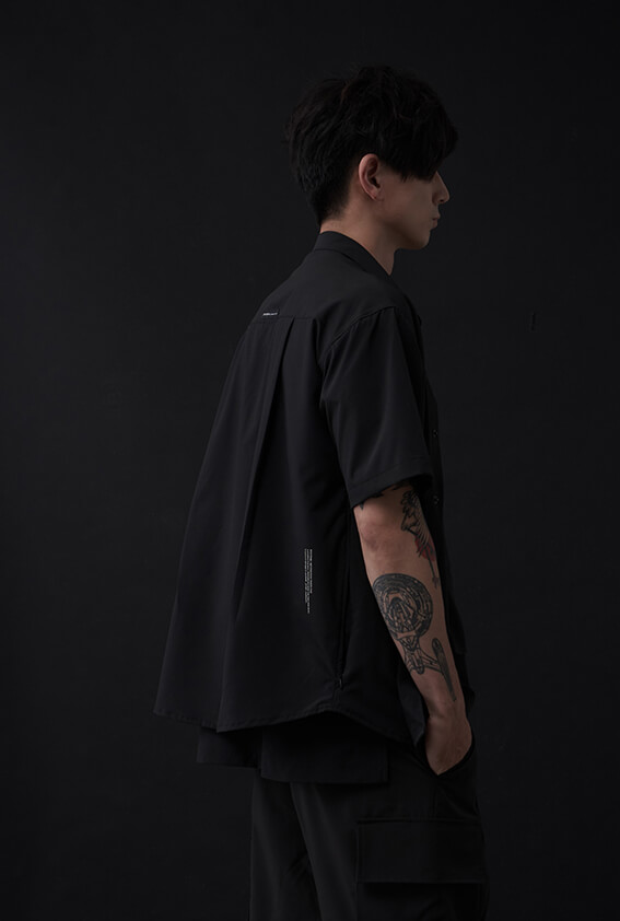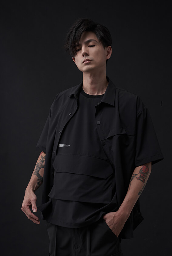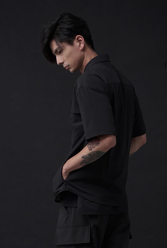 - 左胸隱藏式口袋雙層剪裁、兩側隱藏拉鍊插袋。