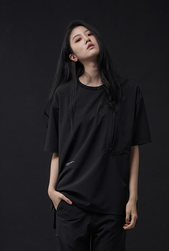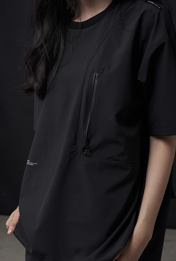 - 左胸防水貼合拉鍊、剪裁口袋設計。