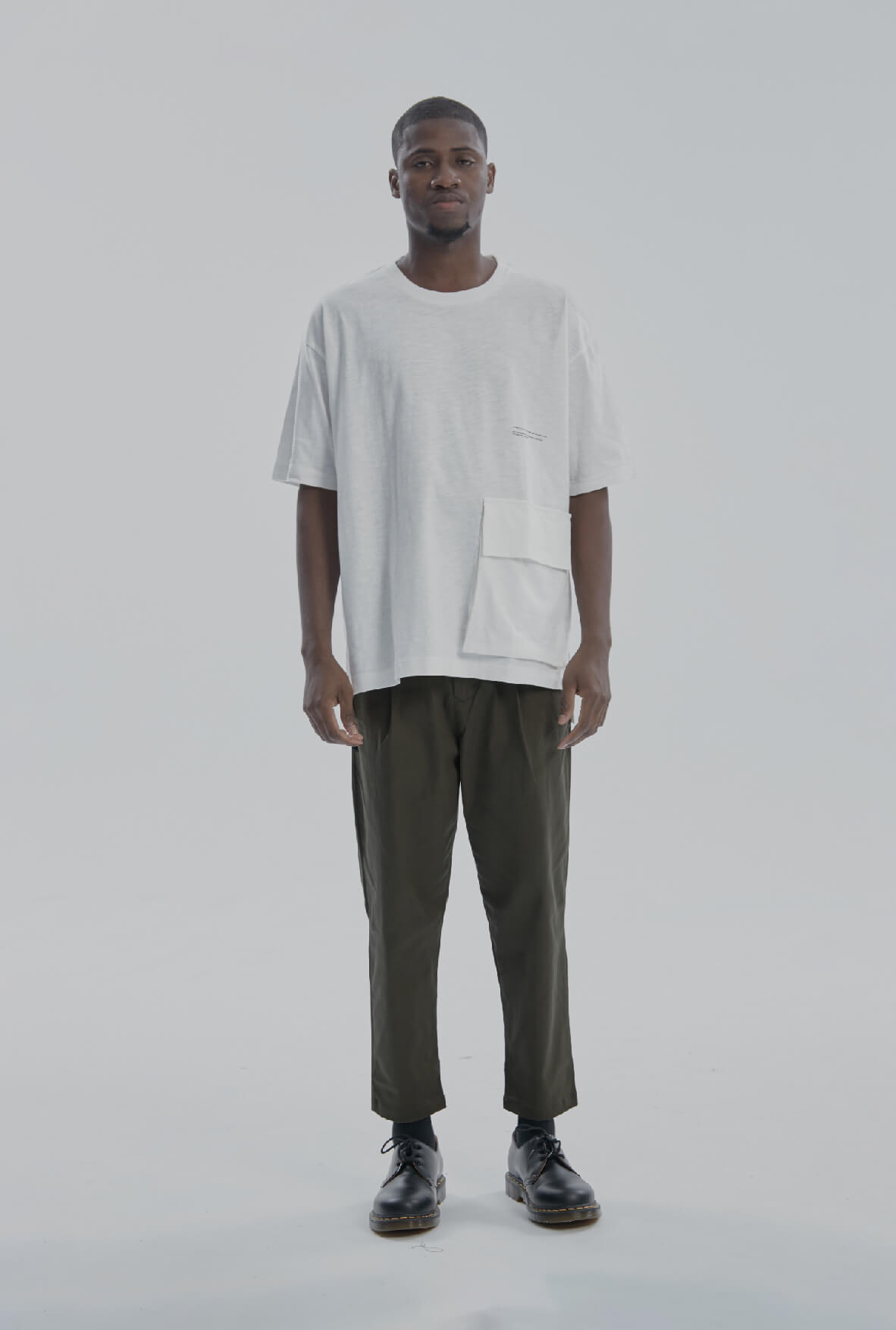 DYCTEAM - 寬鬆落肩單側貼袋TEE (WH)