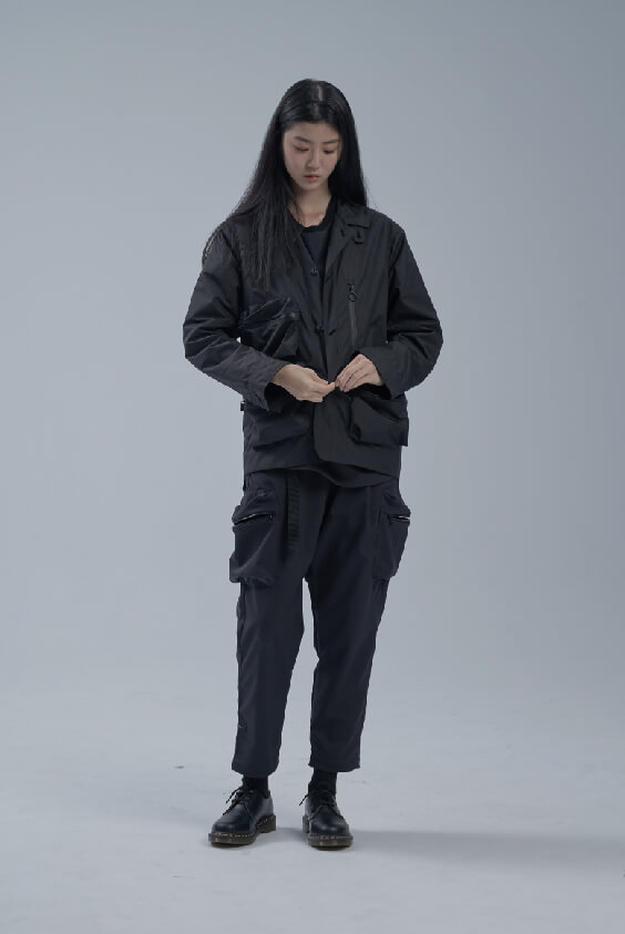 - 正面三立體貼袋、一隱藏拉鍊袋、均使用防水拉鍊製作。