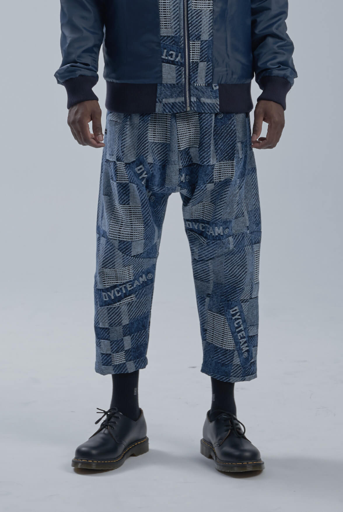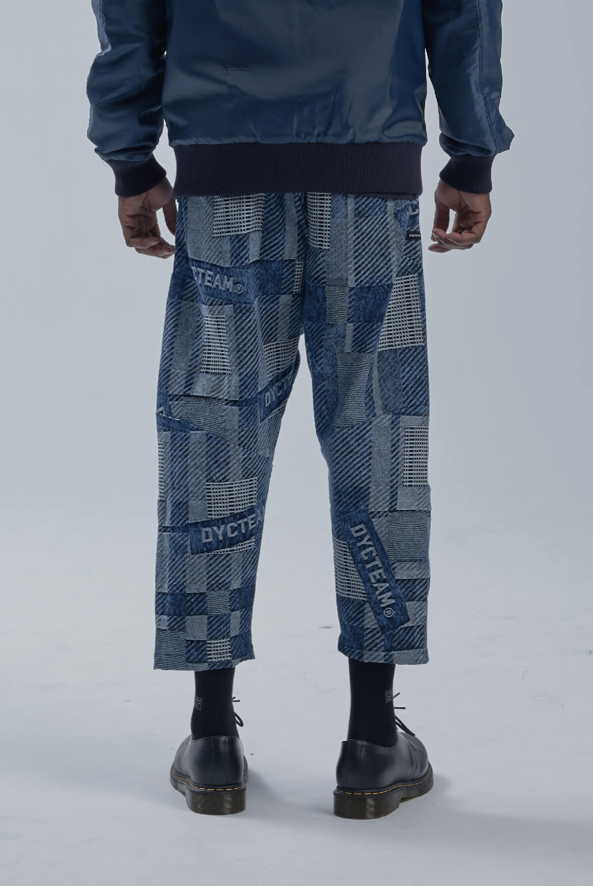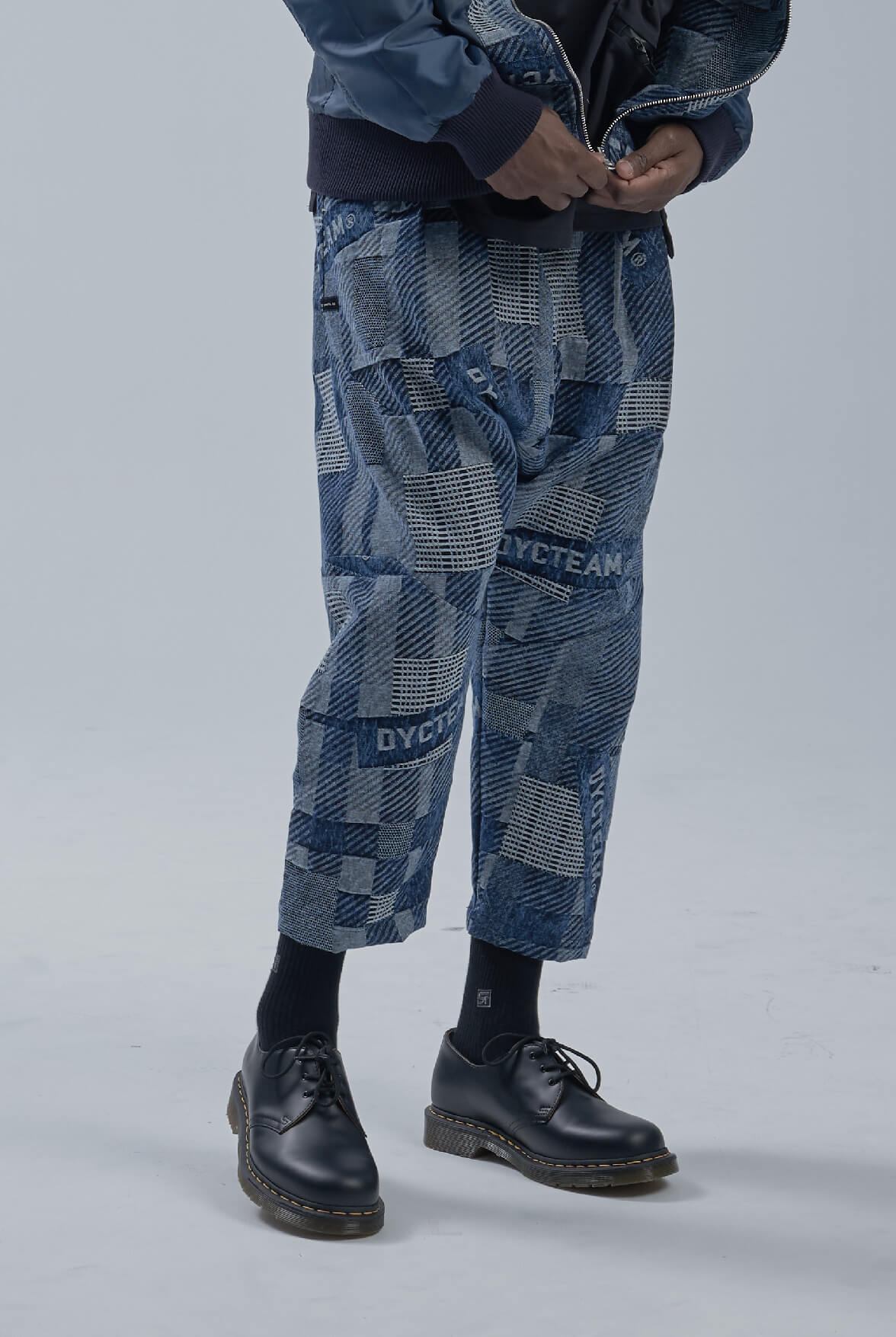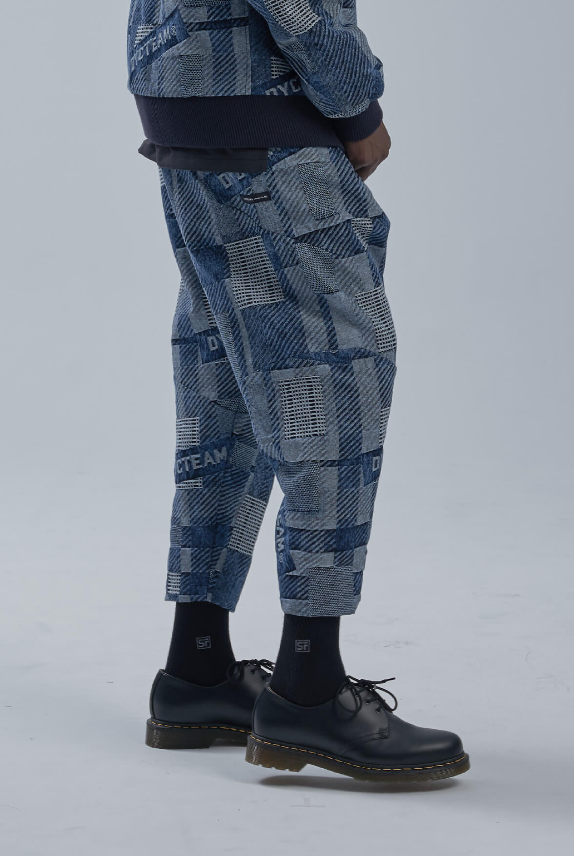 - LOGO緹花低檔八分褲設計。