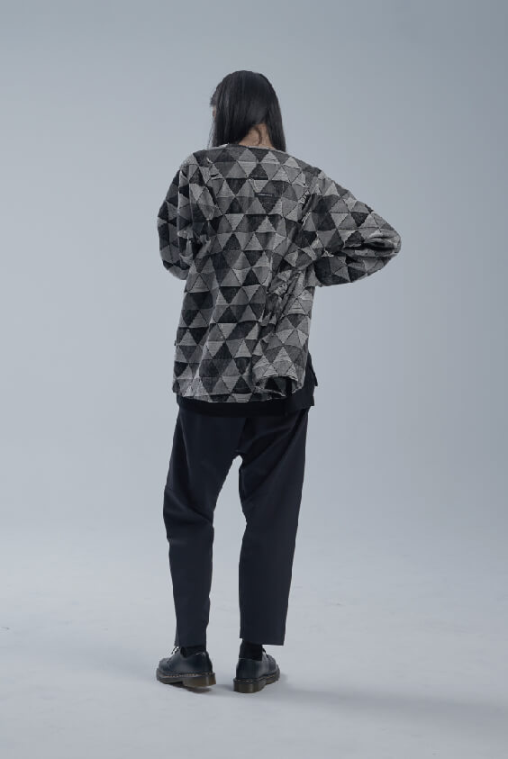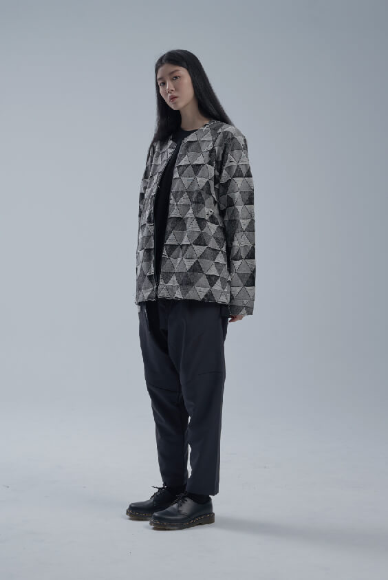 - 三角緹花無領外套。
