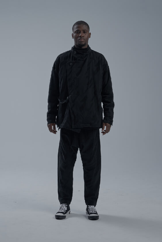 - 黑千鳥緹花外套。