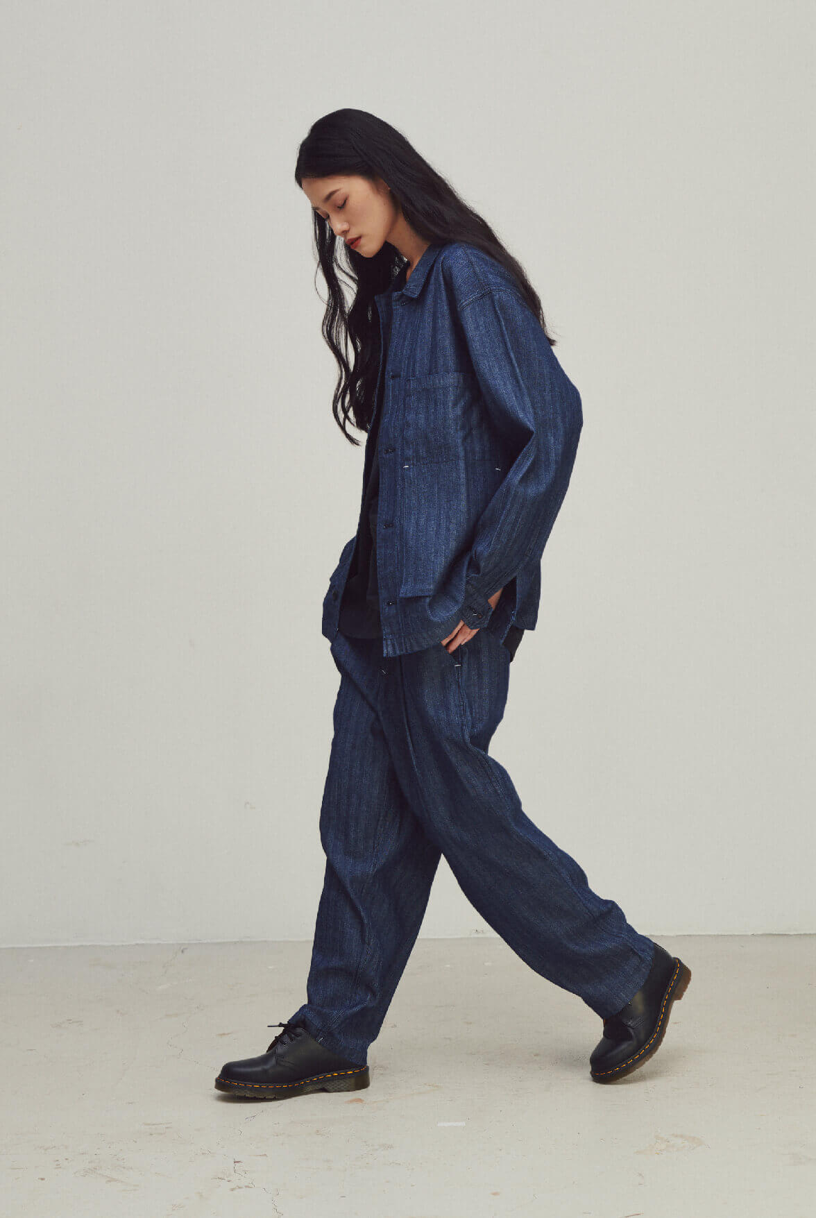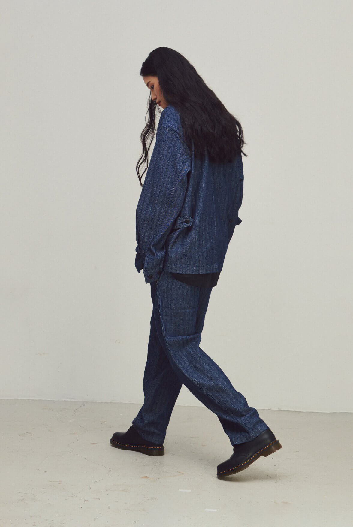 - 人字紋緹花丹寧面料。