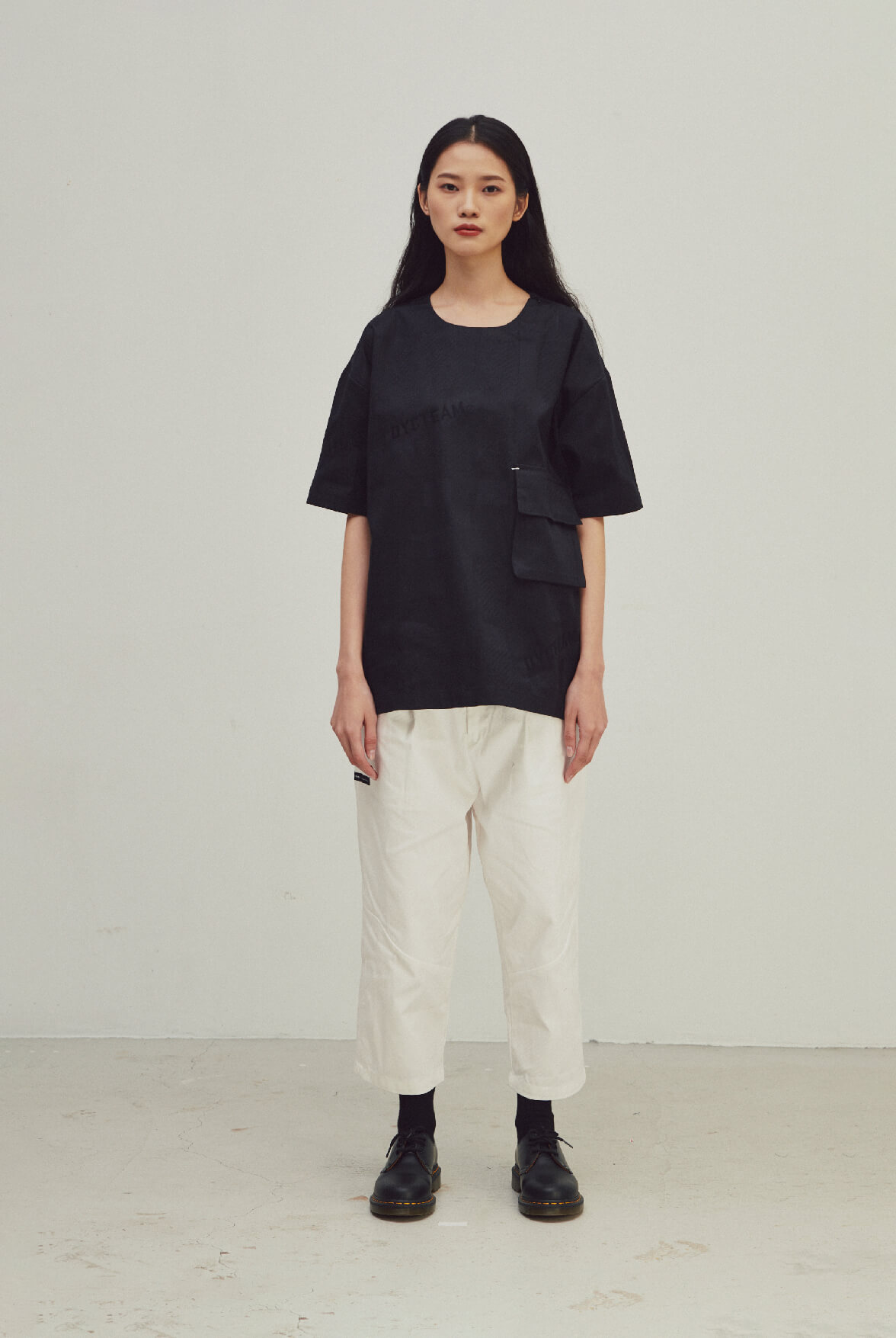 - DYCTEAM經典落肩五分袖版型,寬鬆身形可內其他單品做層次。