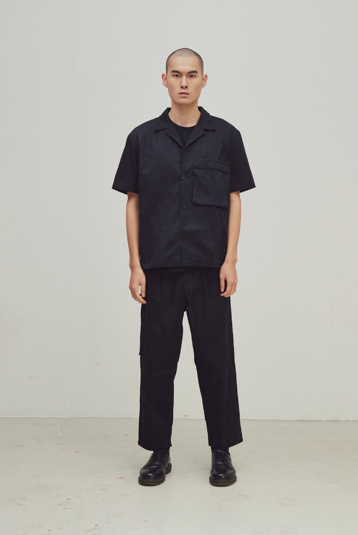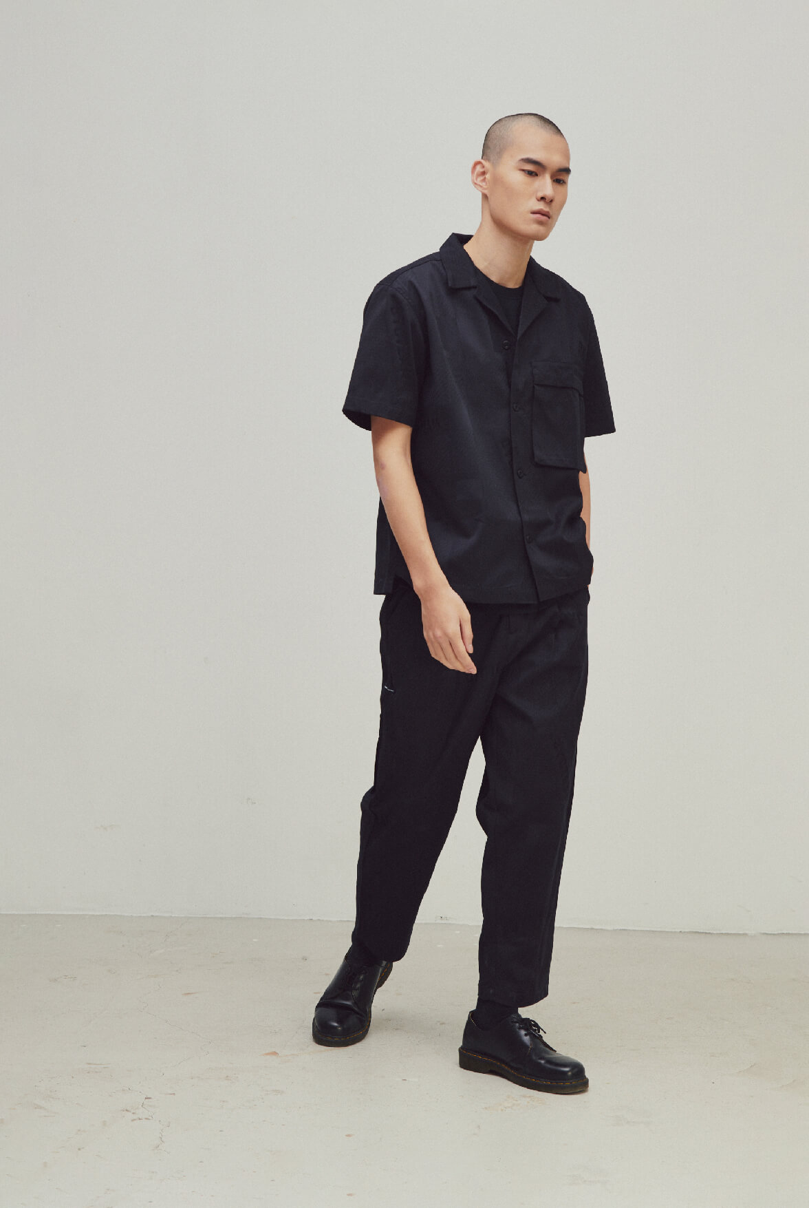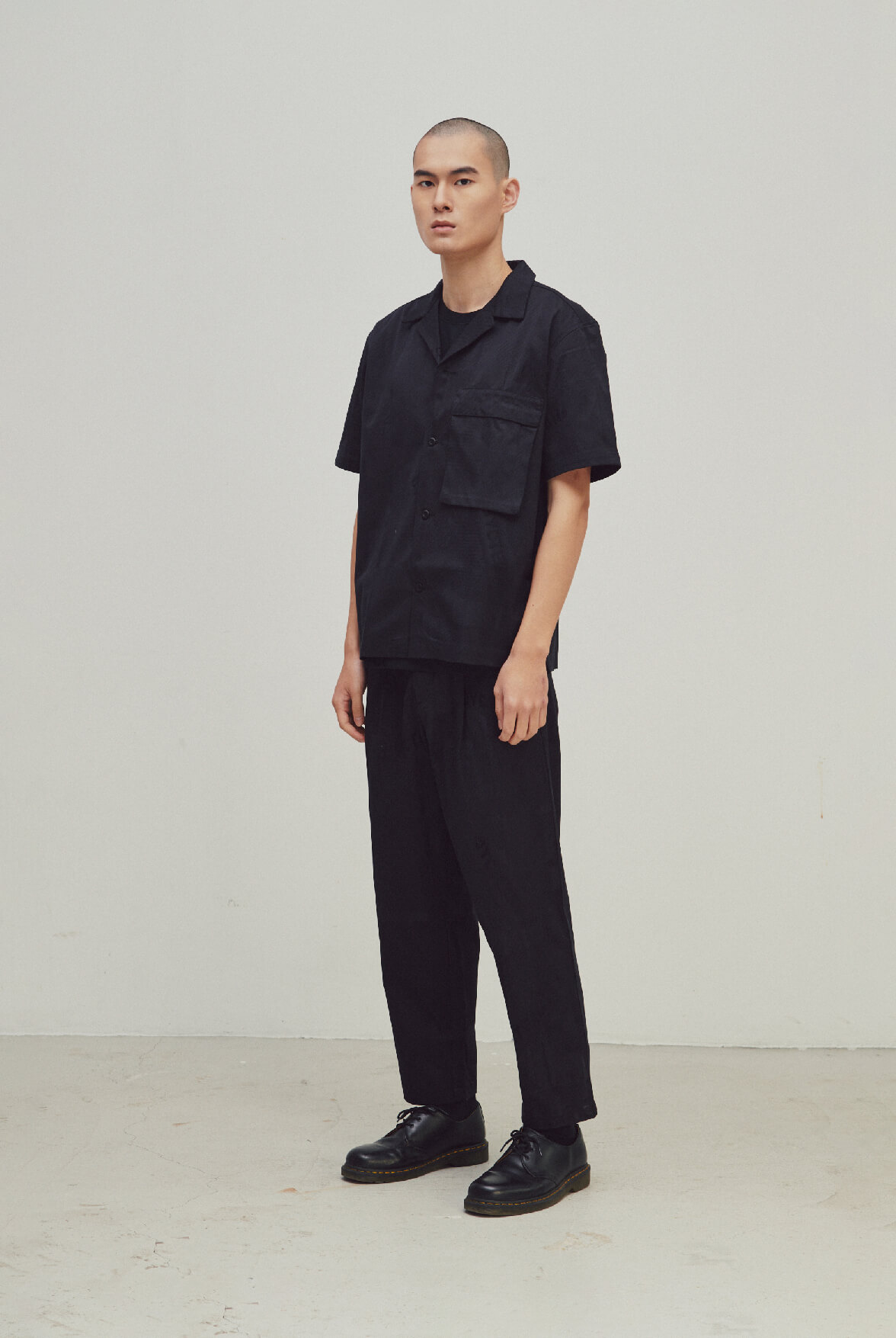 - 鬆身開襟短袖襯衫、左胸貼袋設計。