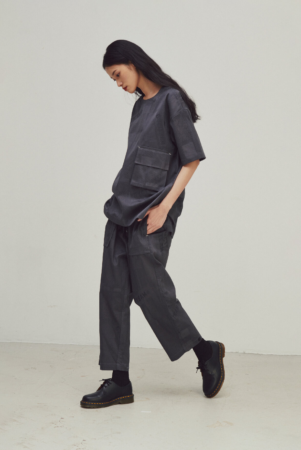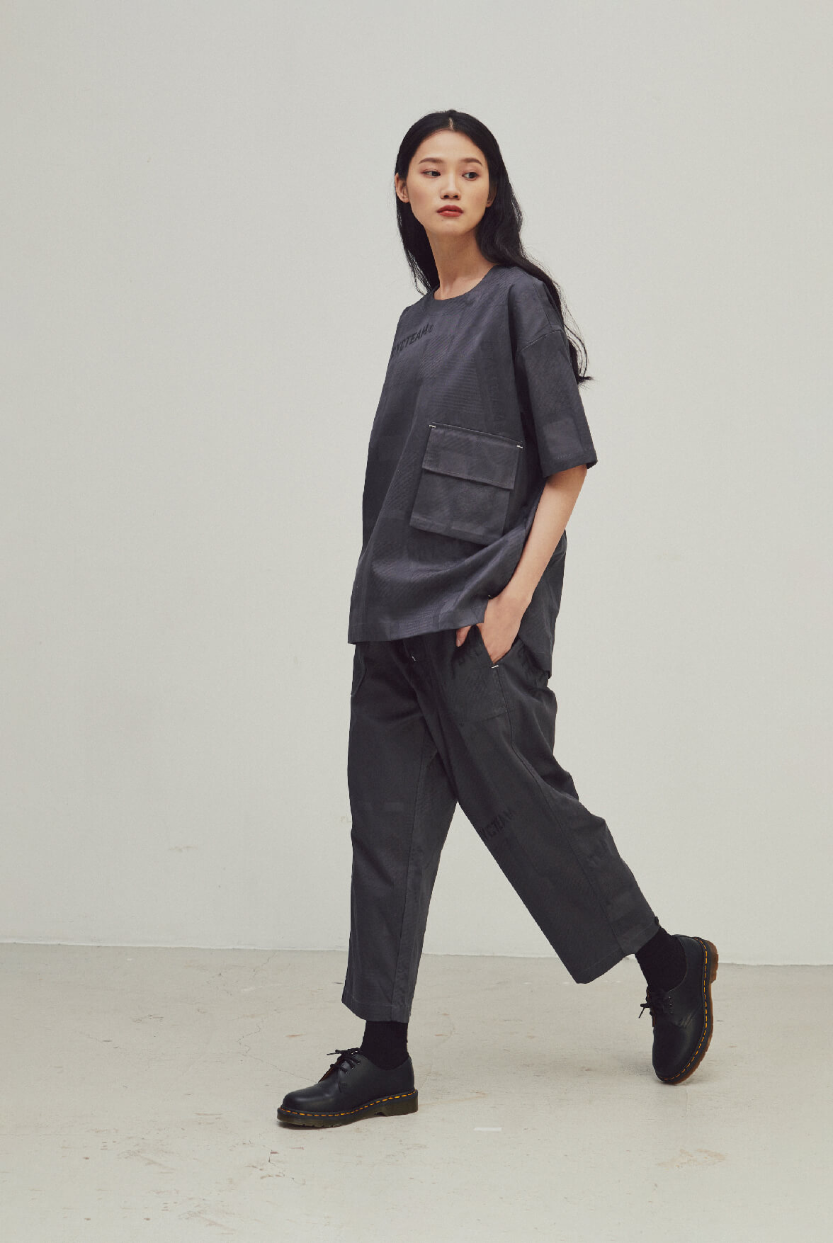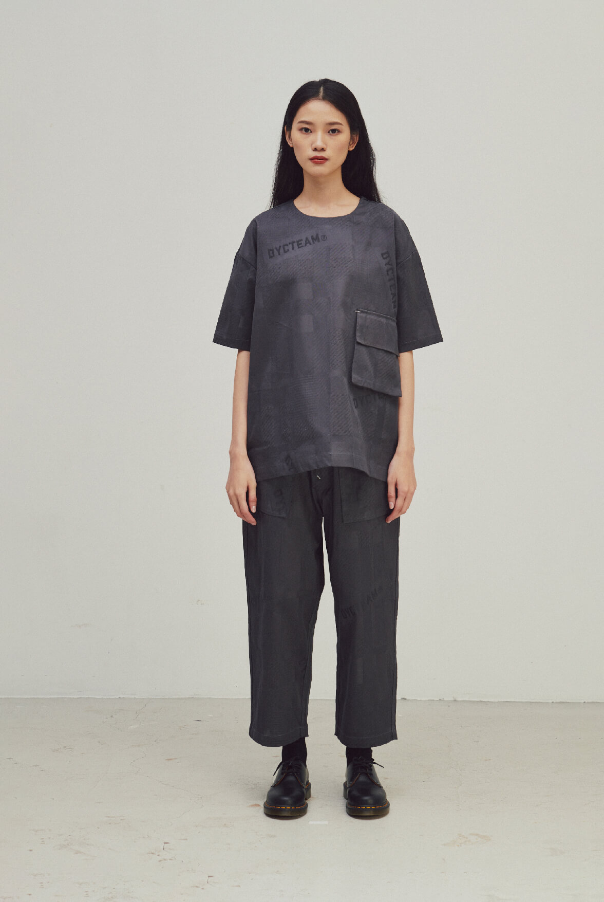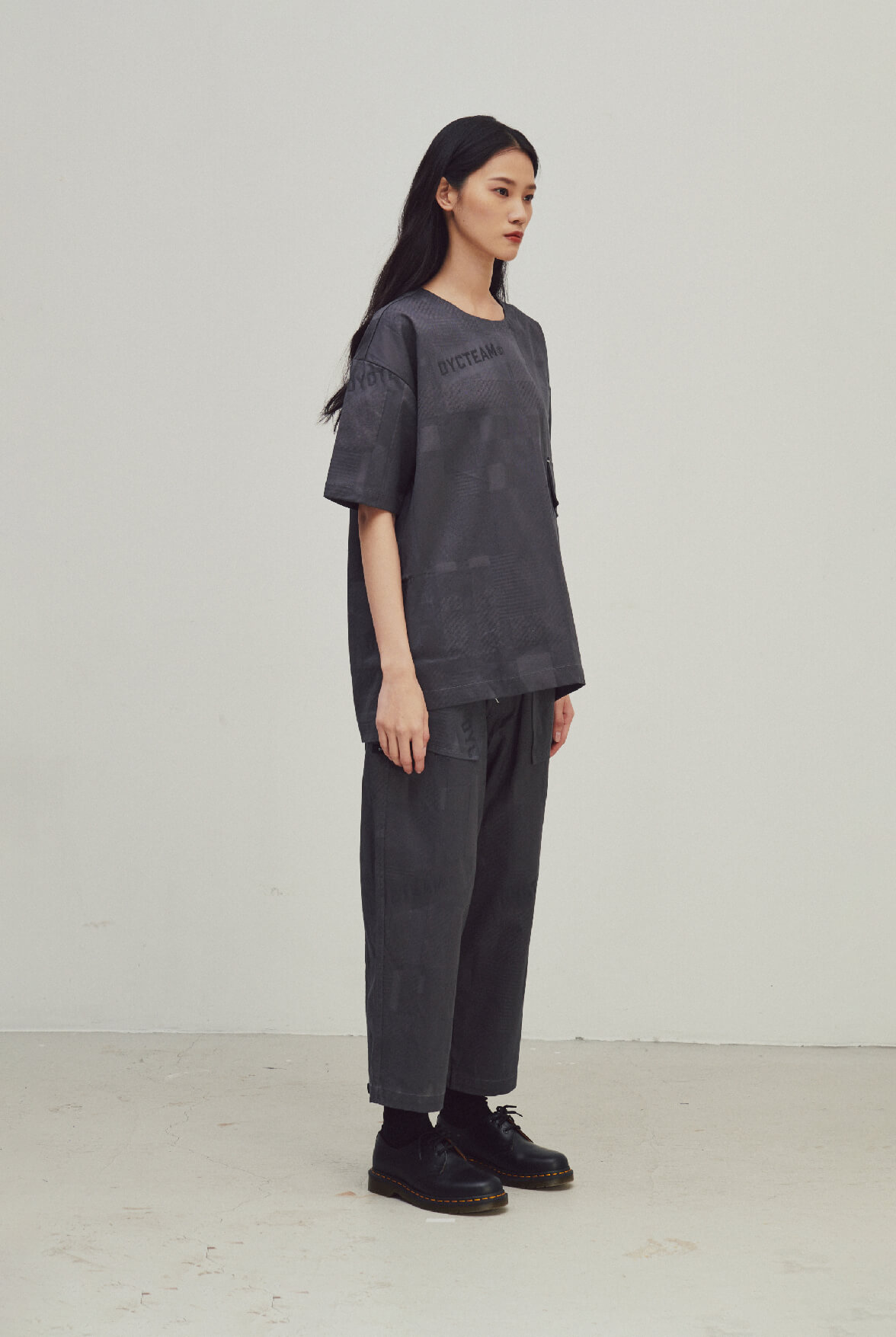 - DYCTEAM經典落肩五分袖版型,寬鬆身形可內其他單品做層次。