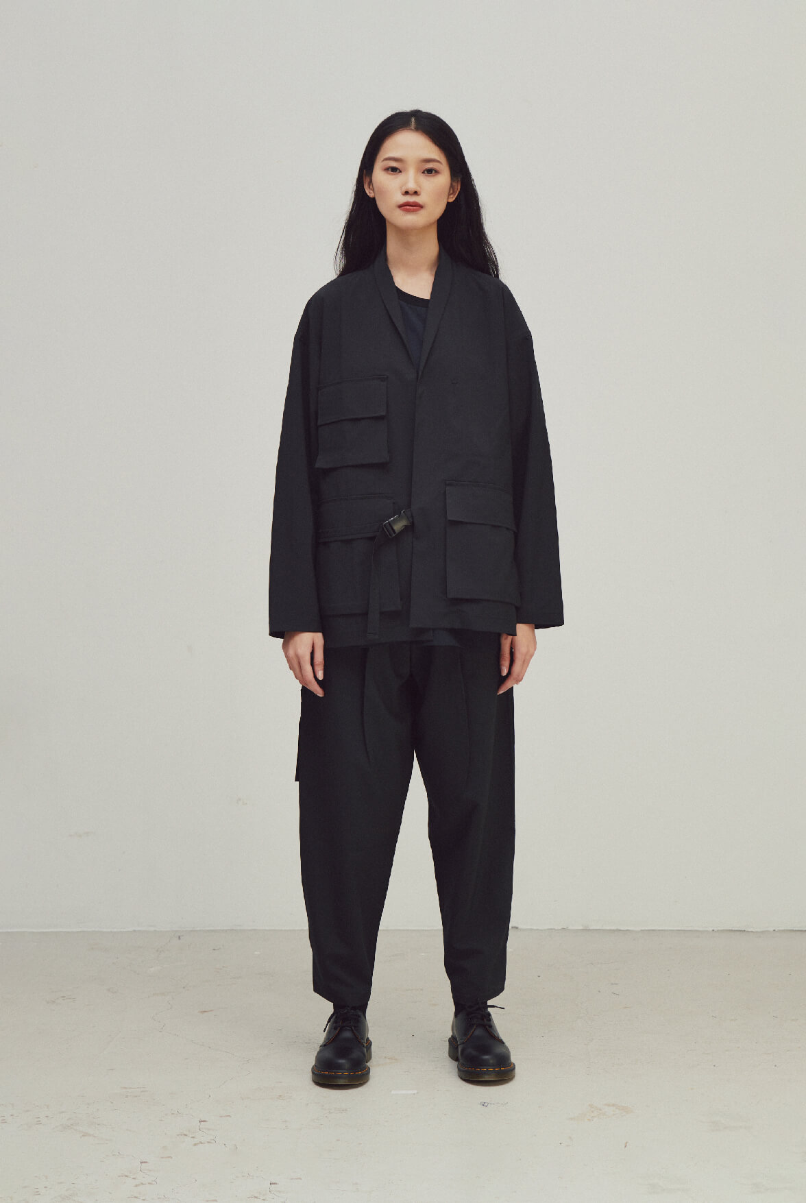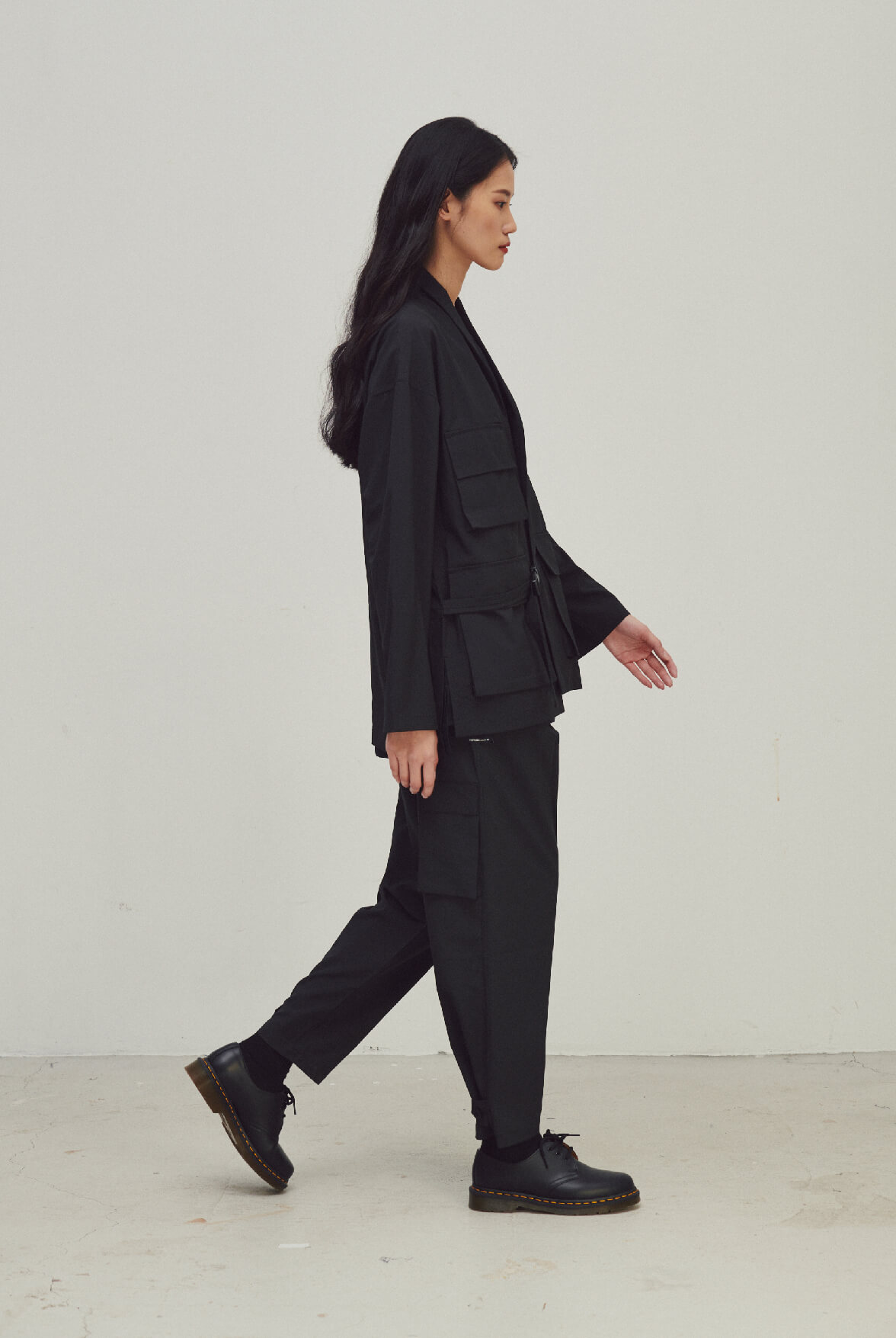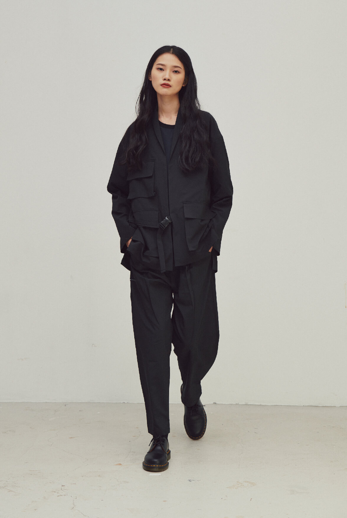 - 三貼袋便利設計,下擺開岔,前短後長。