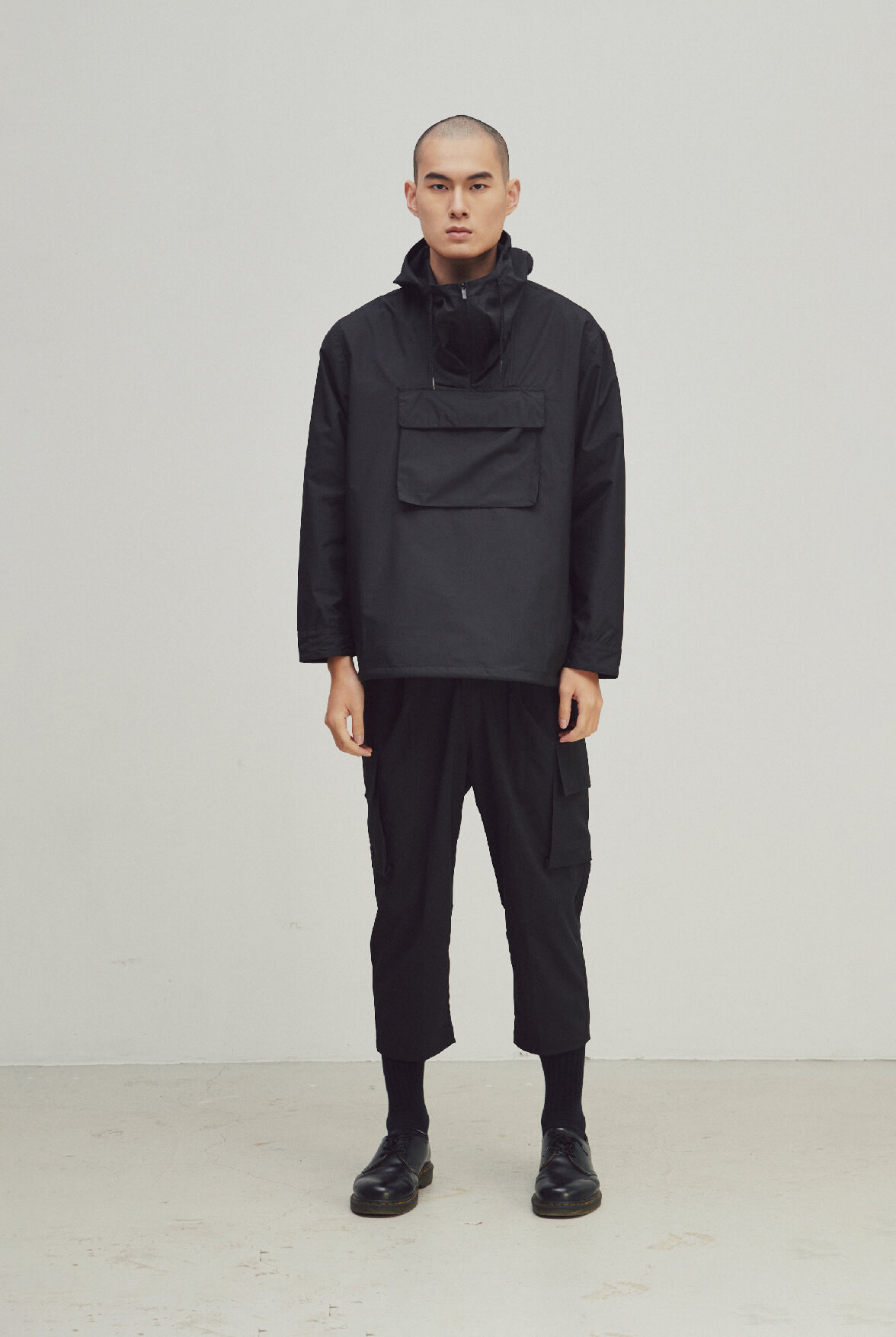 - 正面大貼袋設計,領口打摺、拉鍊,袖口鈕扣調節。