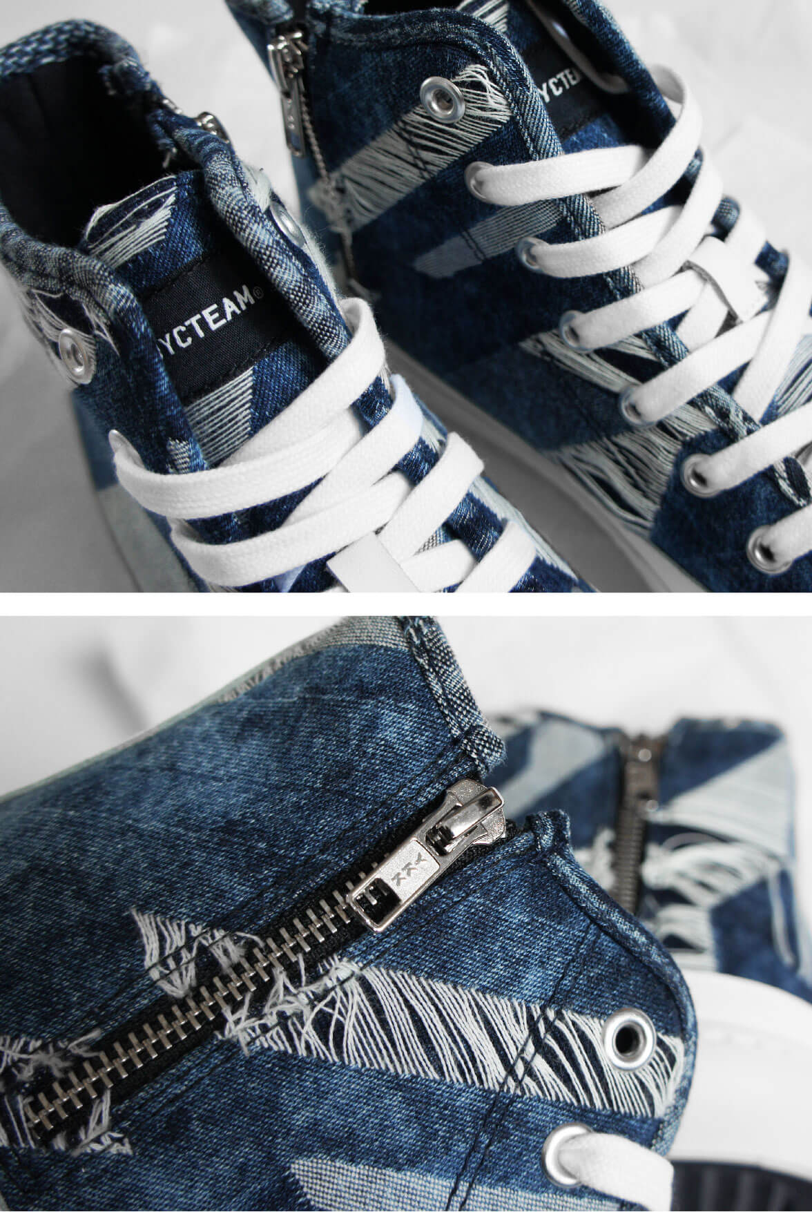 - 鞋內側金屬YKK拉鏈穿脫設計。